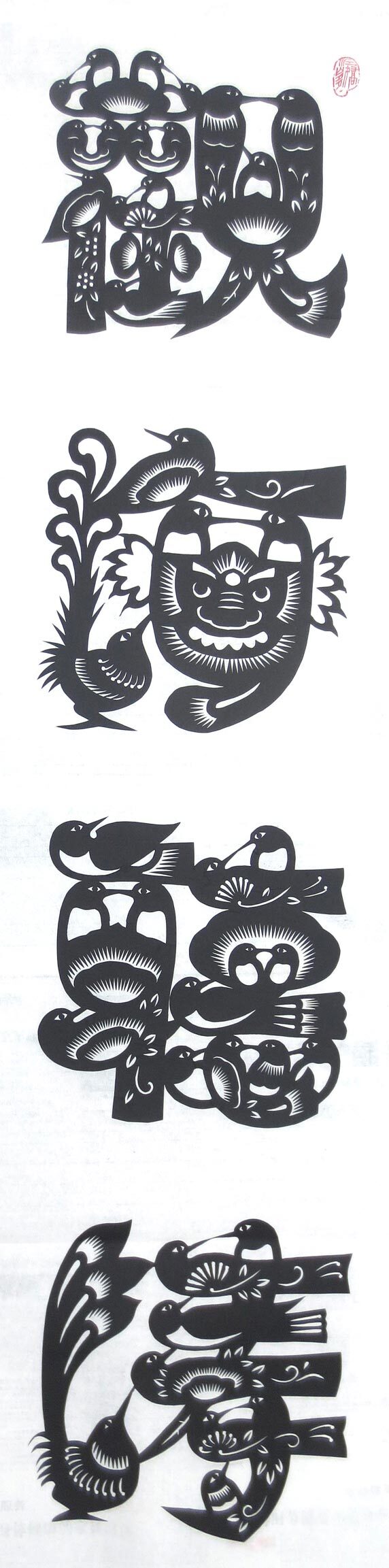 李雁敏说,他平时很喜欢汉字和国学知识,因为汉字是汉语言的根,装饰汉字的目的是为了把汉字艺术发挥到极致,让世人热爱汉字,也让世人热爱剪纸。