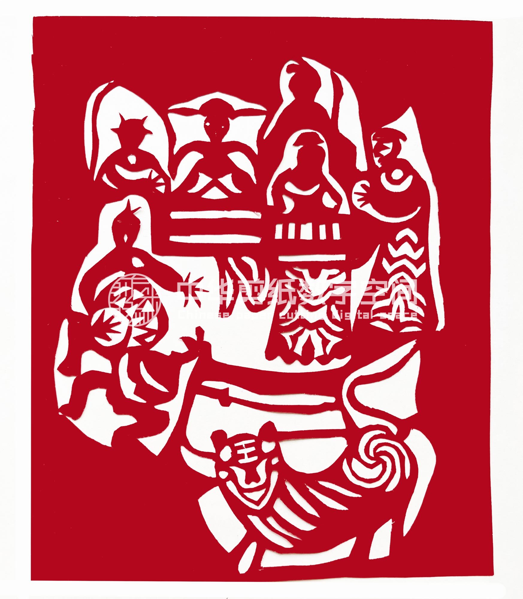 王继汝,女,山西省柳林县金家庄乡曾家崖底村人,生于一九一六年,卒于一九九五年。十五岁开始剪花弄样,绣鞋扎帽。赢得了“好人品、好心人、巧媳妇、巧手婆”的美名。她的作品多次参加“吕梁地区剪纸作品展”、“山西省民间剪纸展”、“中国艺术节美术展”,受到专家、学者的广范关注。她的作品《薛平贵回家》、《吴用智取生辰冈》等34件作品发表在上海《民间美术》刊物,并被中国美术馆全部收藏。她的作品粗犷豪放,古朴典雅,是山西唯一能代表汉代画像石风格的一位剪纸大师。2000年,她被评为中国民间剪纸艺术大师,并报联合国教科文组织。