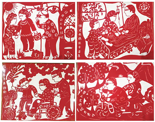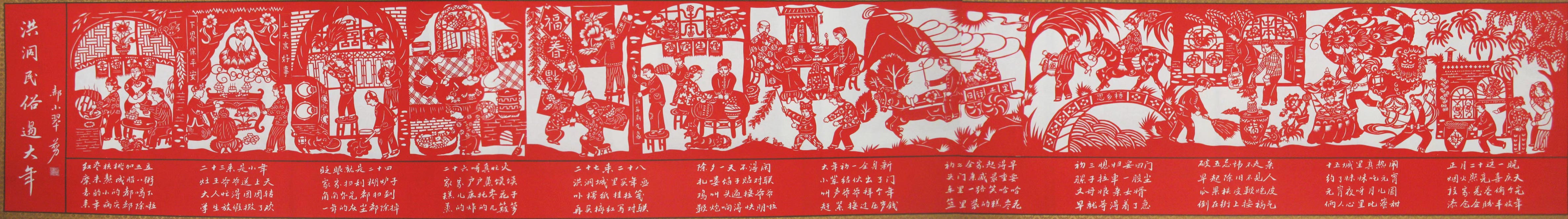 郝小翠,1970年6月,山西省临汾市洪洞县人。临汾市剪纸协会副会长、(洪洞剪纸)市级非遗项目传承,洪洞县妇女创业创新基地的带头人。主要作品有:《大槐树移民图》,《苏三轶事》,《赵城金藏的故事》,《历山神亲》等洪洞民俗故事。《大槐树移民图》既表达了她对家乡的挚爱之情,又向世人再现了洪洞县大槐树下明初移民的民间传说故事场景。