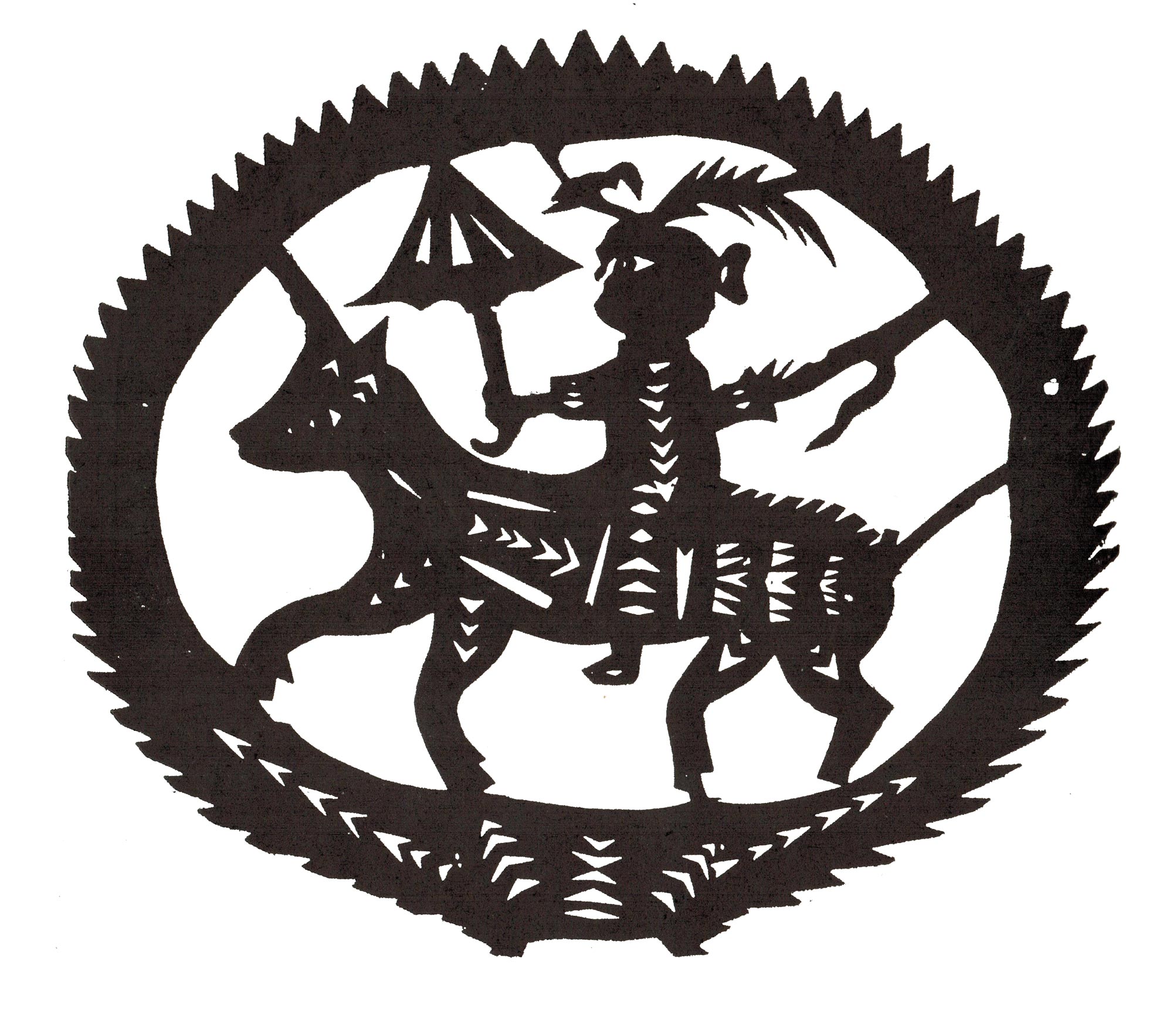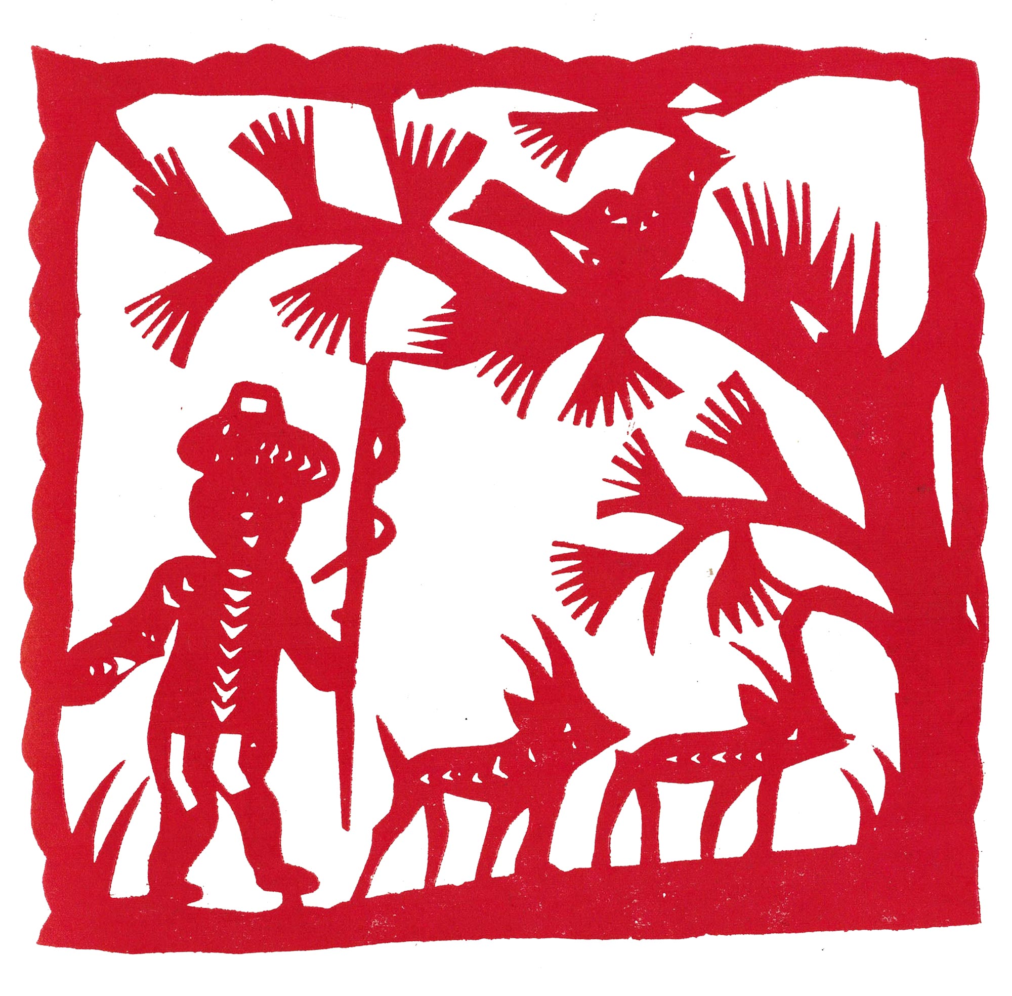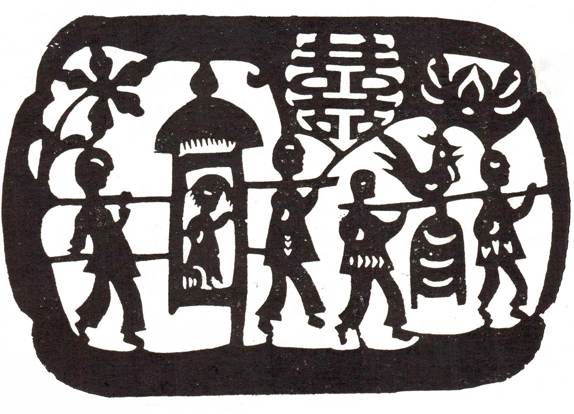 他走到哪里,儿童、姑娘鱼贯相随,吃过百家饭用过万家剪,走遍淮河流域,剪出各种花样、喜字、寿花多不胜计。他的作品质朴、乡土,个人风格鲜明。