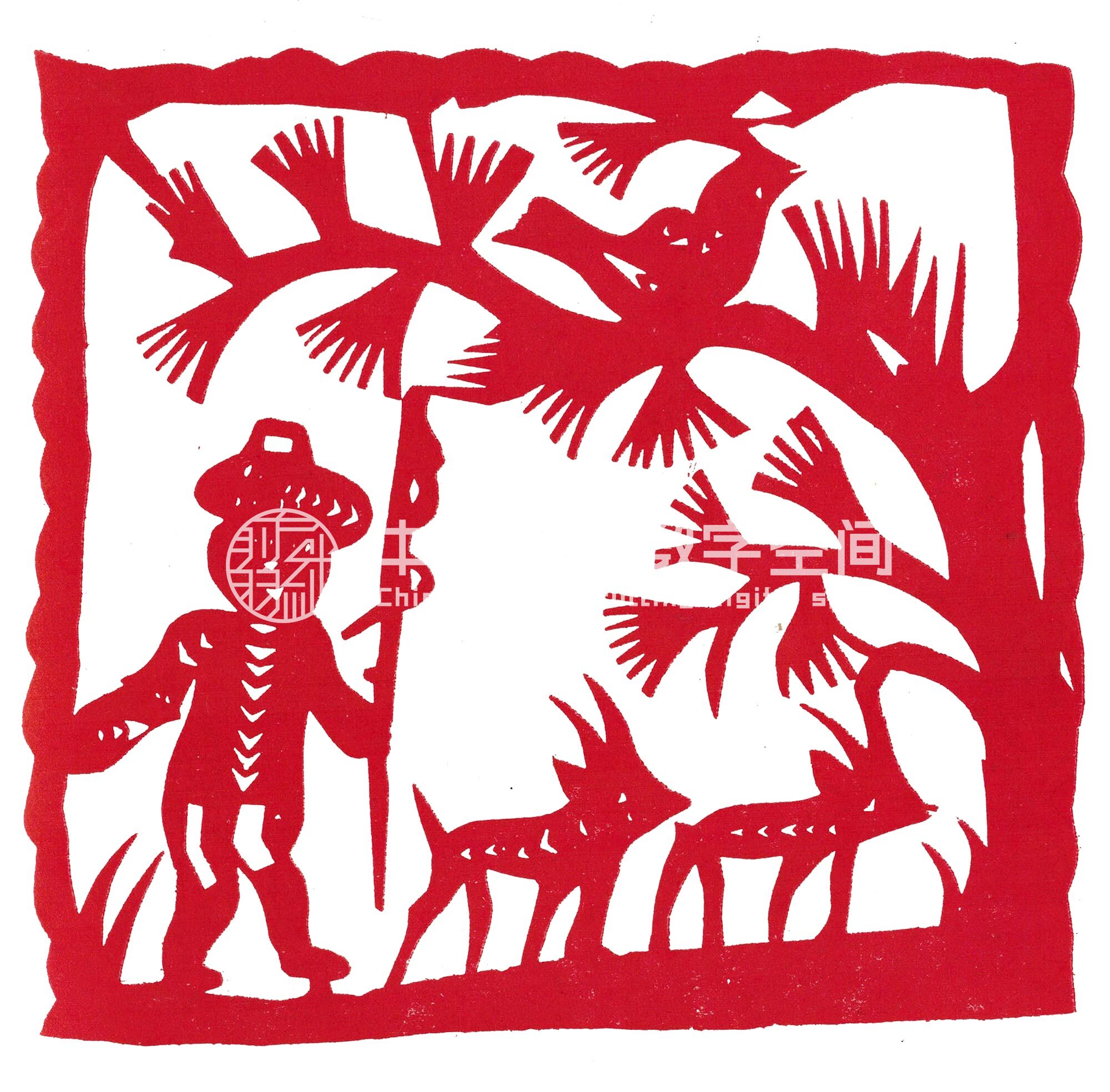 他走到哪里,儿童、姑娘鱼贯相随,吃过百家饭用过万家剪,走遍淮河流域,剪出各种花样、喜字、寿花多不胜计。他的作品质朴、乡土,个人风格鲜明。