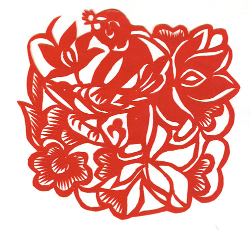 徐桂花娘家在子长县,徐桂花聪敏、好学,说话风趣,爱唱民歌,会讲古朝,性格坚毅,她要想做的事都能想法做成做好。小时候因生活所迫,在饥饿和战乱中度过了自己的青春时光,没有机会学习传统剪花技艺。生活稳定后,在婆婆和左邻右舍巧婆姨的指点下学会了做鞋做衣等女红活计。有时也学着别人的样子给娃娃鞋上衣服上绣点花,给娃娃用鸡蛋壳和纸做老虎,用布做老虎枕,老虎帽,过年时给窗子上剪些小窗花,清明节给娃娃们捏些燕燕雀雀。由于有艺术悟性,不管是剪、绣、捏,她都比别的婆姨做的好看,有情趣,也算是村上的能人巧人。