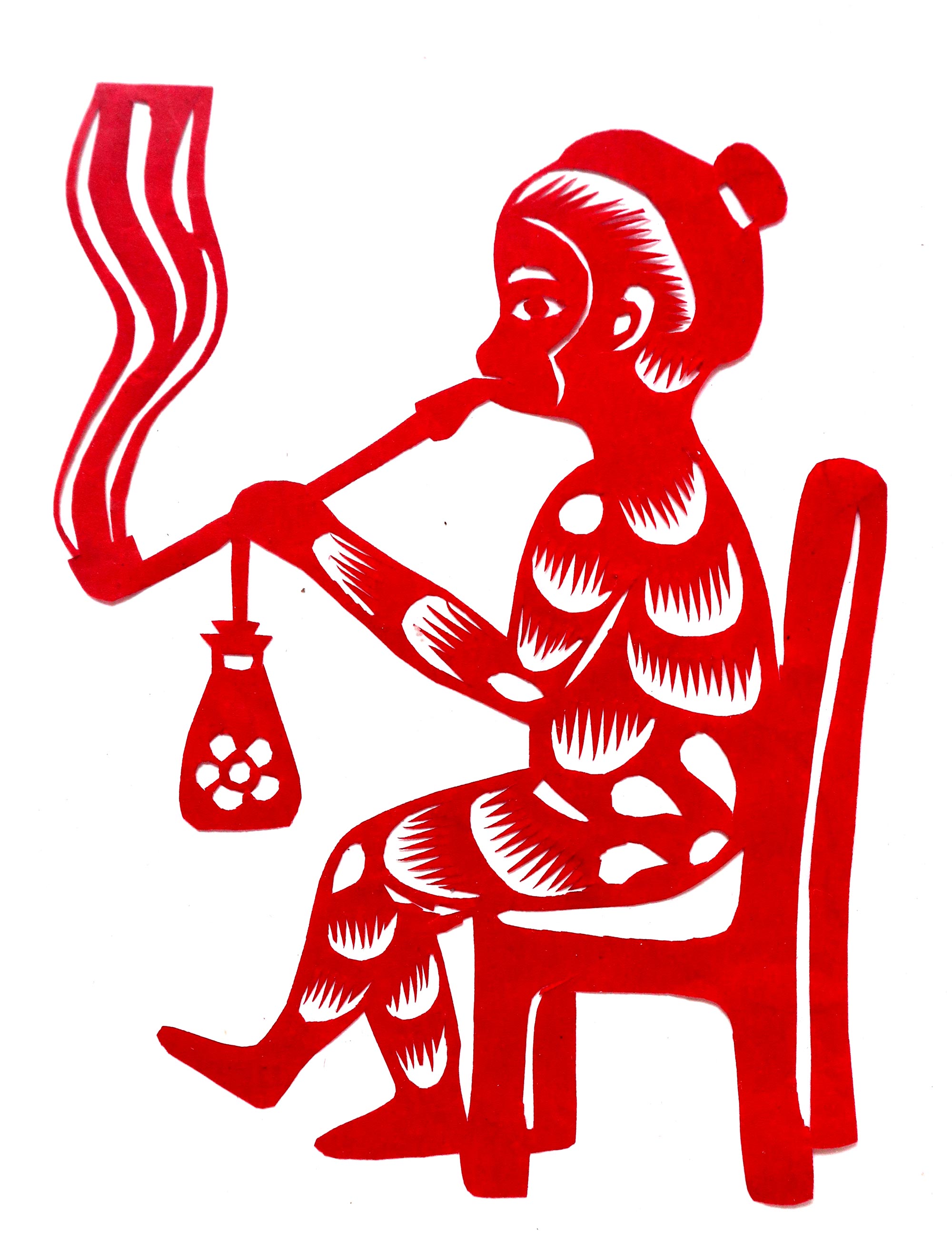鱼智娜兄妹四人,她最小,上有两哥一姐。8岁上学。小时候经常看母亲和姐姐做刺绣,常学她们画花草、剪窗花。暑假帮家里做农活,母亲教的花样,她在山上放牲口时,用树枝在地上画着回忆多遍。过年时用的窗花她也参与剪制,大部分都是拓样剪的猴吃烟、老虎、狮子、蝴蝶、喜上眉梢等。22岁师范毕业后,分配到学校任教,并在教学中开设剪纸课。