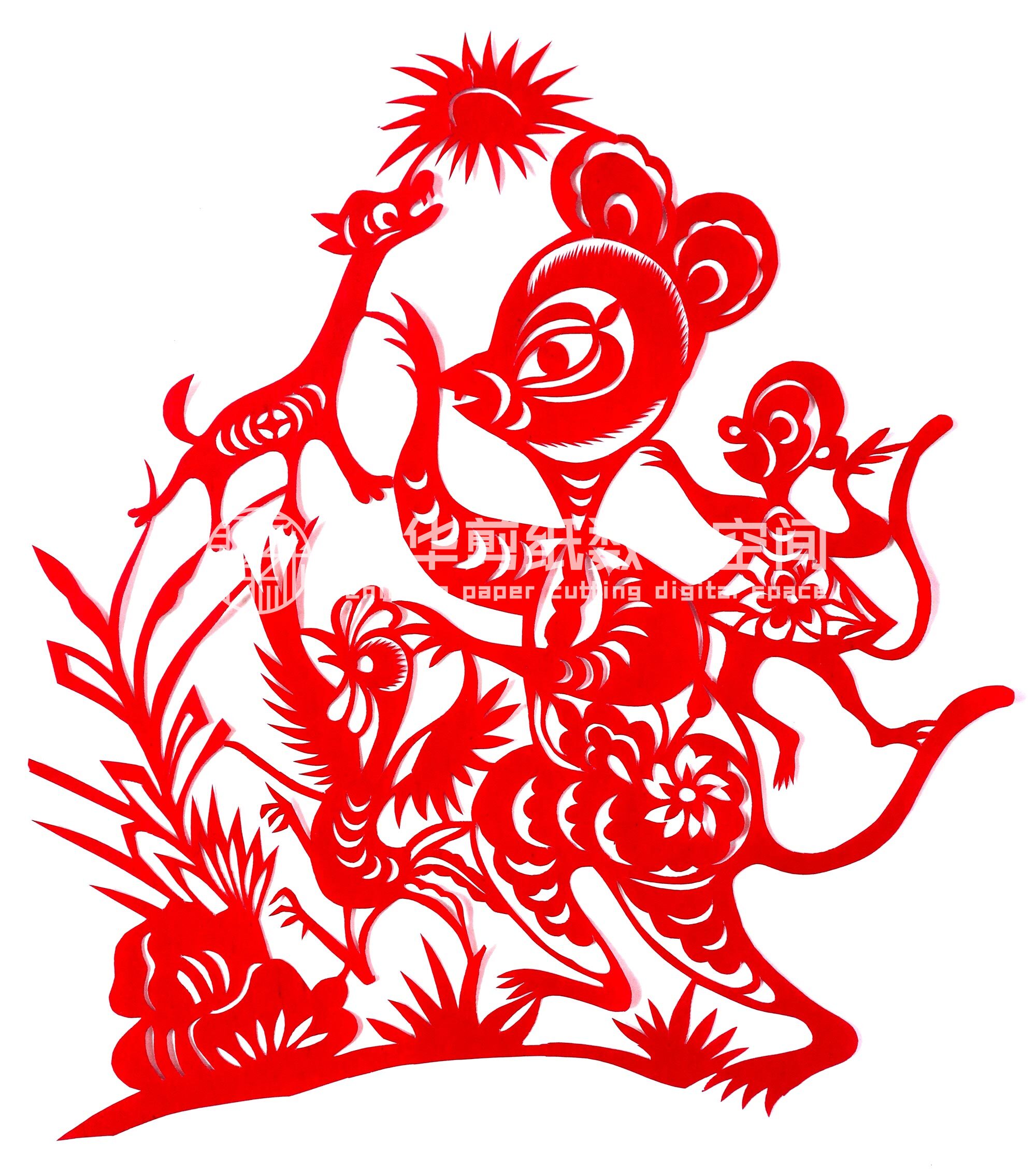 周想林姊妹六人,她排老六。周想林八岁上学,上到十岁时,父母让她回家揽牛,直到19岁出嫁。15岁时抽空上了一个月冬学班,上学时喜欢画画,经常受到老师夸奖。11岁时,她一边在山上揽牛,一边画花剪花。剪窗花的样子是姑奶给的。最开始剪的都是石榴、白菜、老鼠啃金瓜等传统纹样。姑奶家在志丹县杏河杨渠村,她常常在姑奶家住上两天,帮着做农活做家务,到晚上让姑奶给讲剪纸的故事、教剪纸的技法。父母那时候不支持,但她总是偷偷地剪。开始拓着样子剪,慢慢也能冒剪一些样子。