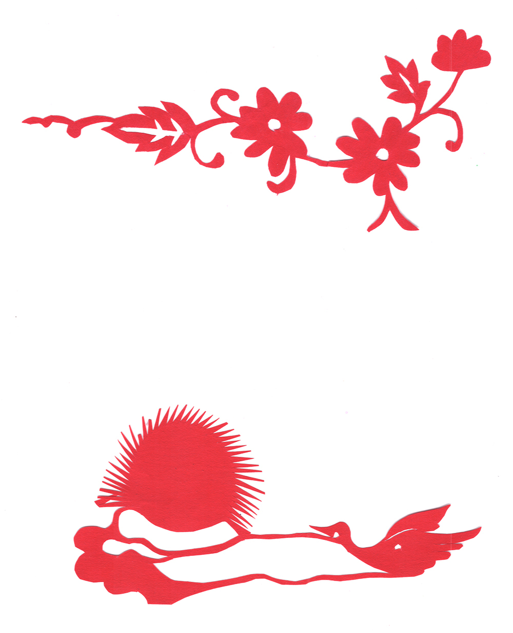 1993年,刘会侠结婚,那年23岁。婆家是黄陵县桥山镇梨园村人,当地老户。公公婆婆农民,去世早。丈夫农民,小学文化程度。婚后生有三个娃,二女一儿。1995年计划生育时,她超生了第二个女子,搞计划生育的人把她家的一个柜子给抬走了,柜子里面有她收藏的和她剪的板架云子以及老窗花样。1997年,等把柜子抬回来时,柜子中的剪纸一张也没有留下。丈夫不支持妻子剪花,嫌耽误干家务。2003年,丈夫看到妻子在炕上剪花,很生气,把放在炕上的剪纸一把塞到炕洞烧了,剩下的剪纸刘会侠拿到集市上卖了,还赚了50多元钱。