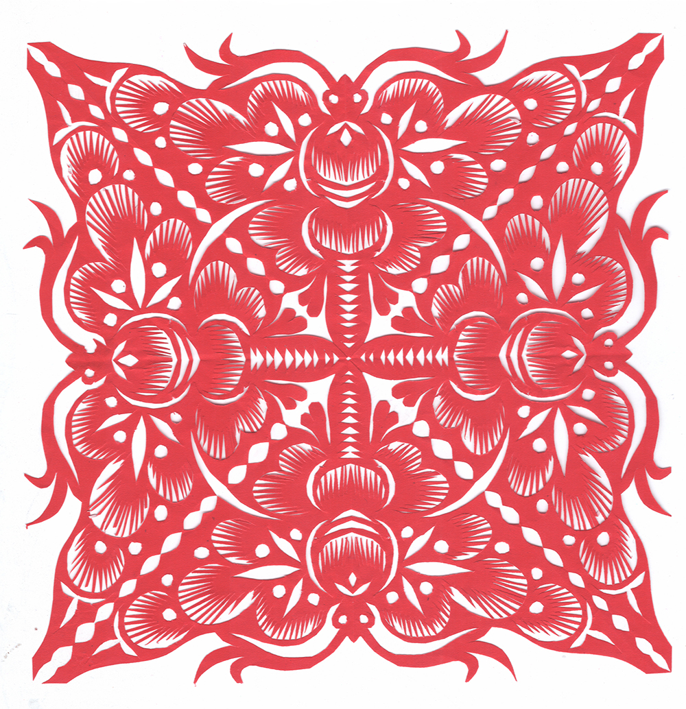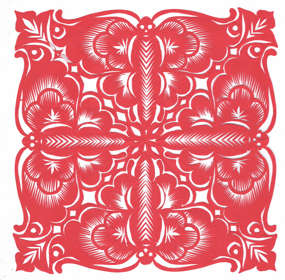 2018年,任润能认识了付百勤老师,付老师是黄陵的剪纸巧手。她给指点如何搭配花草,如何搭配颜色,如何装饰内容。对任润能启发很大,真正知道了民俗剪纸的艺术特点。