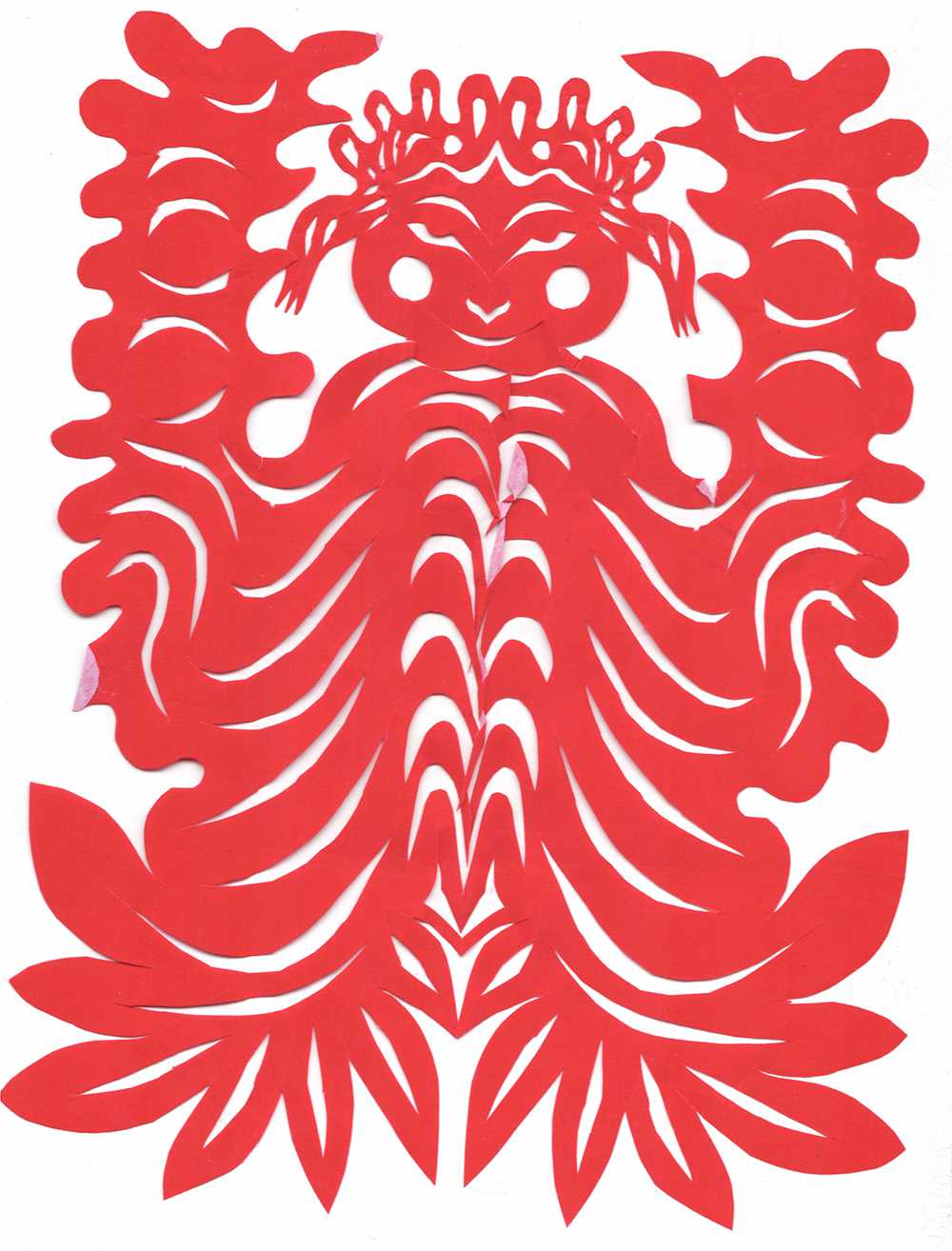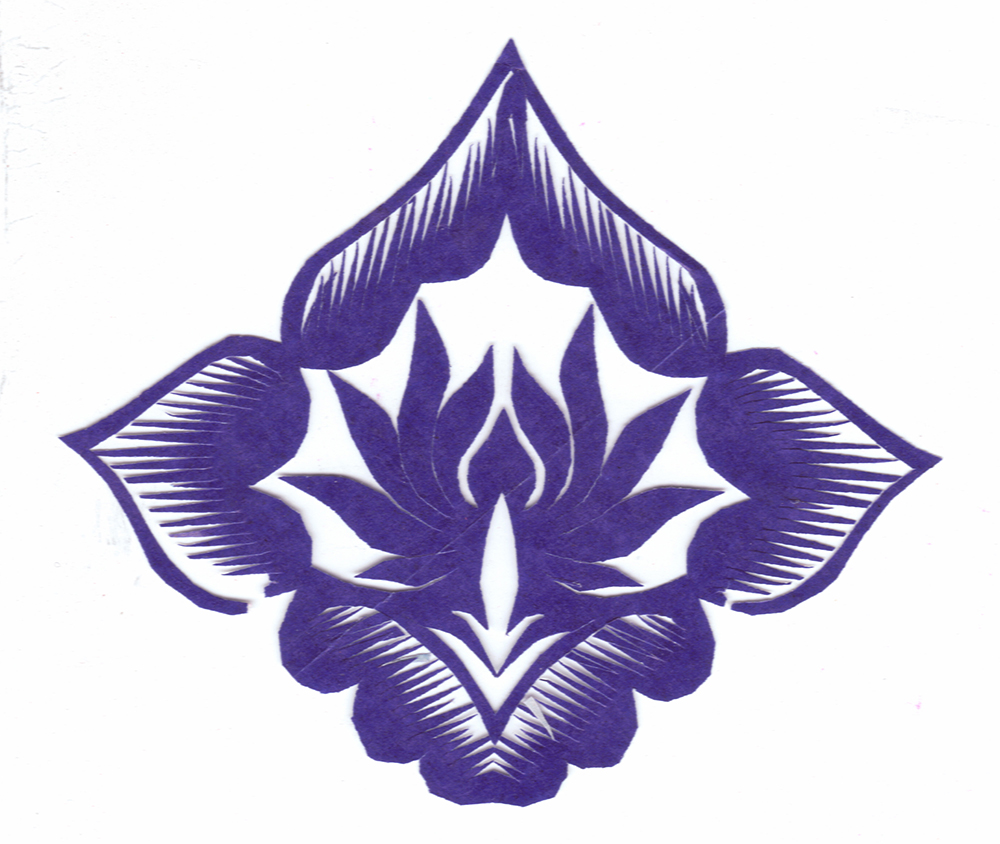 苏芳英兄妹10人,她排行老五,上有三个姐姐,一个哥哥,下有两个妹妹,两个弟弟。她8岁上学,一直上到高中,在学校一直是班里的优秀生,经常排列前三名。小时候在家就喜爱剪纸,因母亲剪纸水平高,她常跟上母亲一起剪花。因而从小就熟悉剪纸的技法与民俗。刚开始学剪纸就是冒剪,从不要样子,但剪大幅的板架云子,她要熏成样子才能剪成。那时在学校怕耽误课程,从不剪花,只有放假回家或过年时才剪。剪花多是用大人剪剩下的废纸角,红纸太贵,父母怕她浪费。只要不影响做家务,剪纸时父母便不说不管。