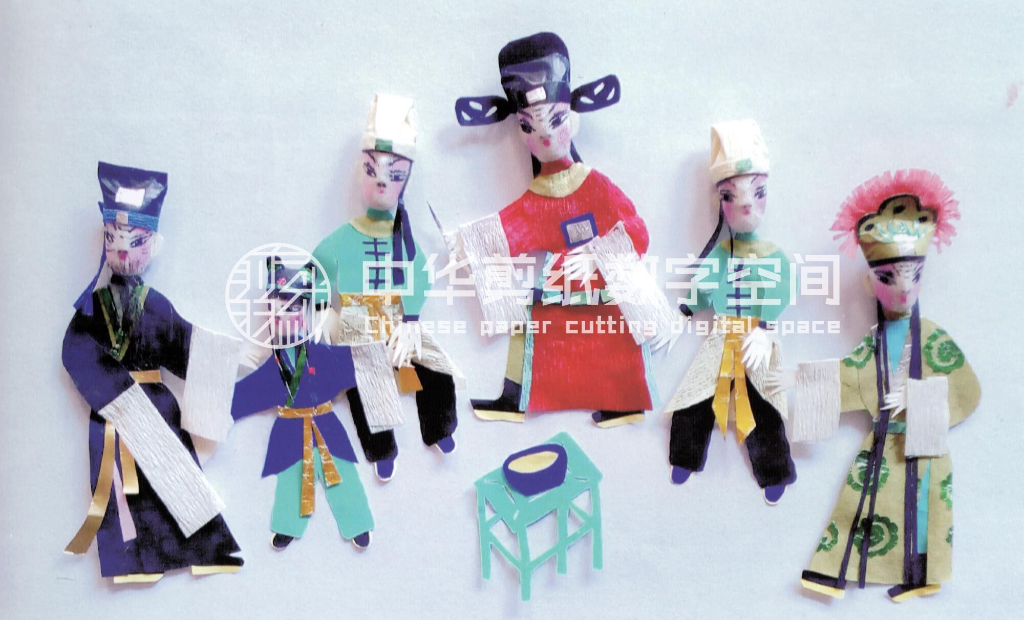合阳新池乡的纸塑窗花,多采用各种色彩、金银箔、棉花、布片等材质进行局部剪贴、包扎、点染,然后再进行摞贴和衬色,组合成一幅完整的剪纸。因其贴在窗纸上呈现浮雕状,所以在民间又称为“出花”,意思是突出纸面的窗花,它的内容多为戏文人物,由此一些地方也叫“人厢”。