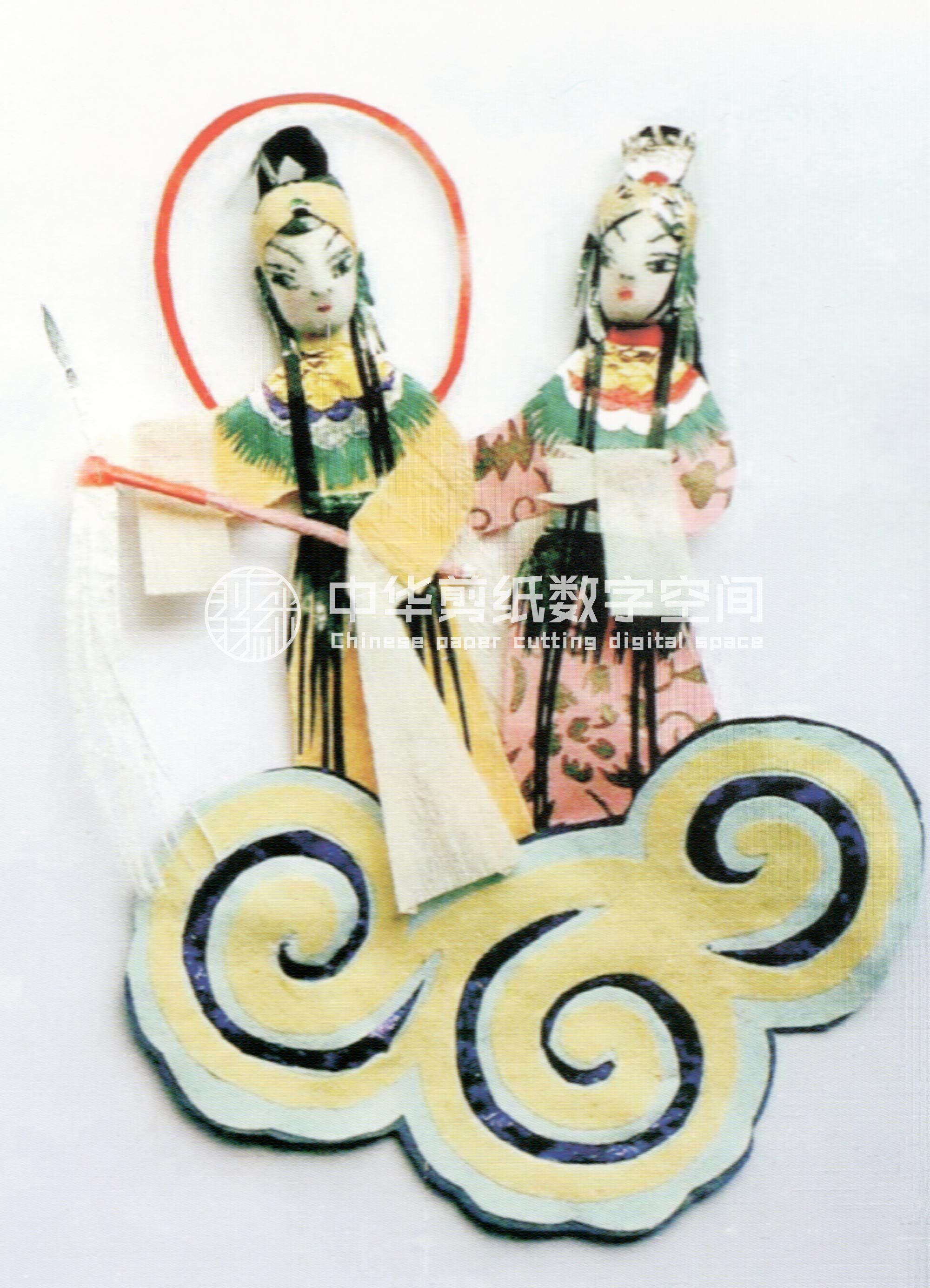 合阳新池乡的纸塑窗花,多采用各种色彩、金银箔、棉花、布片等材质进行局部剪贴、包扎、点染,然后再进行摞贴和衬色,组合成一幅完整的剪纸。因其贴在窗纸上呈现浮雕状,所以在民间又称为“出花”,意思是突出纸面的窗花,它的内容多为戏文人物,由此一些地方也叫“人厢”。