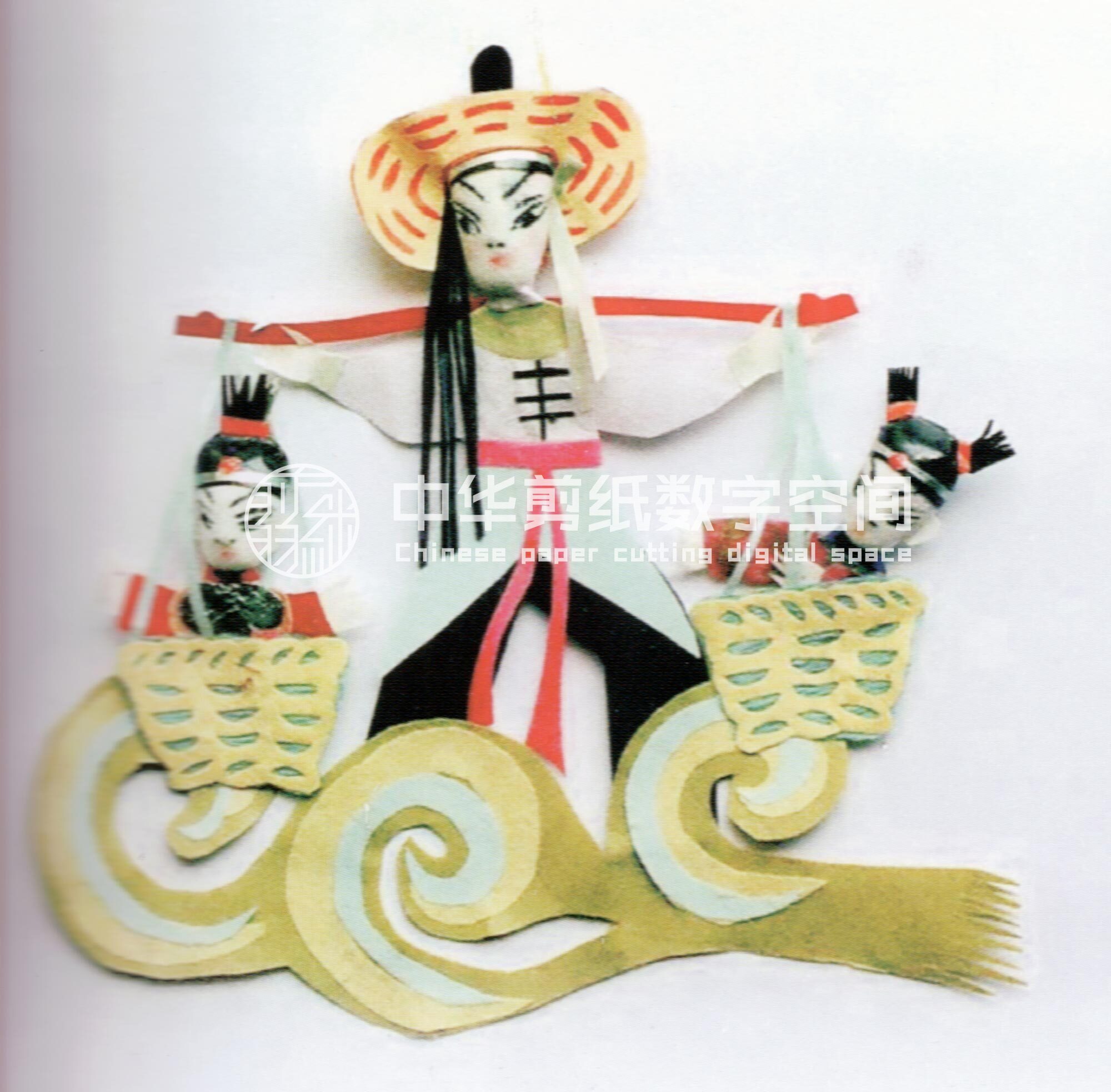 合阳新池乡的纸塑窗花,多采用各种色彩、金银箔、棉花、布片等材质进行局部剪贴、包扎、点染,然后再进行摞贴和衬色,组合成一幅完整的剪纸。因其贴在窗纸上呈现浮雕状,所以在民间又称为“出花”,意思是突出纸面的窗花,它的内容多为戏文人物,由此一些地方也叫“人厢”。