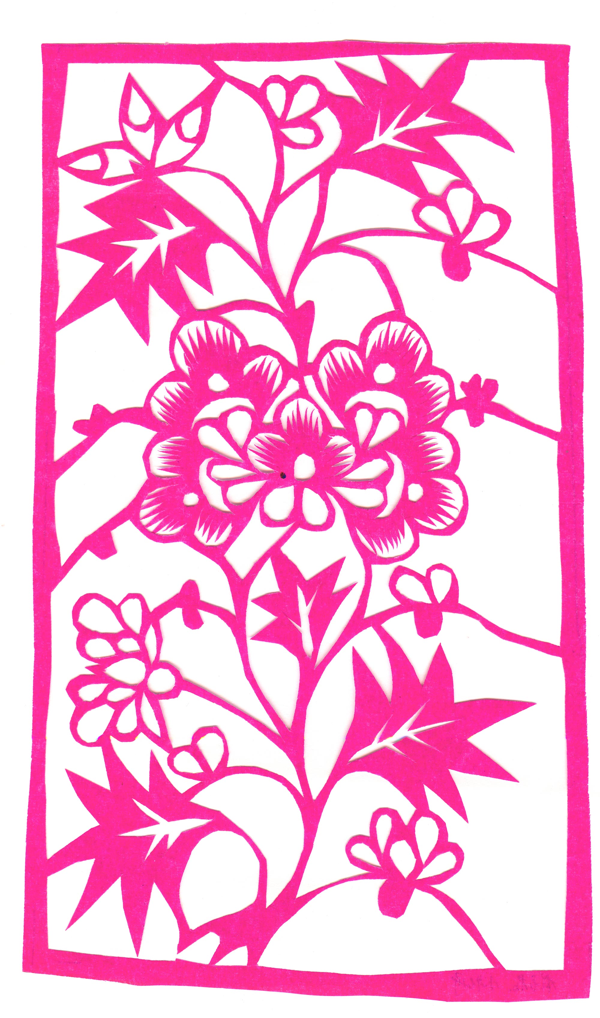 程玉花,女,1952年-2019年,汉族,少量识字。她从小喜欢剪纸,每到寒冬腊月,村上的姑娘媳妇常聚在一起剪窗花。她和一些小女孩向大人们要点窗花样,用煤油灯熏制,然后再拓着剪,相互比巧。程玉花的母亲和奶奶都会剪花,特别是奶奶剪得最好,在村上有一定影响。母亲也从各方面给予支持。耳濡目染下,她学会了各种传统剪纸的造型和剪法。