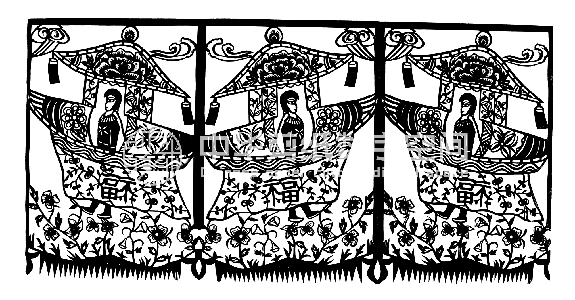 1987年,寇革兰结婚,那年22岁。结婚时的枕头顶是母亲绣制的,其它的都是购买的。婆家是黄陵本地人。公公农民,不识字,以务农为生。婆婆不识字,不擅于做女红活。丈夫杨录元,大专文化,国家干部。婚后生有一个男孩。结婚后,她还是一直喜欢剪花,只要下班有空闲,她就会拿起剪刀剪上一会剪纸,主要是为了开心。2018年创作的剪纸《盛世延安》参加国家邮政省市分公司“庆祝独立运营20周年庆典”职工艺术作品展获得奖励。”