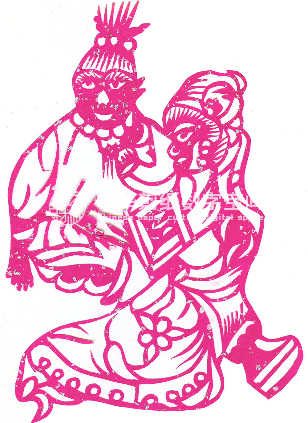 杨喜仙不但剪纸技艺娴熟,个人风格突出,还是一个一巧通百巧的多面手,她捏面花、刺绣、纸扎、扎染、织布等技艺在村上无人能比,远近闻名。1980年黄陵县文化馆邀请她参加剪纸创作班,期间她创作了一批传统窗花及戏文、传说故事和生产劳动内容的剪纸,代表作有《宝莲灯》《打铁》《哭娃》《猪》等。