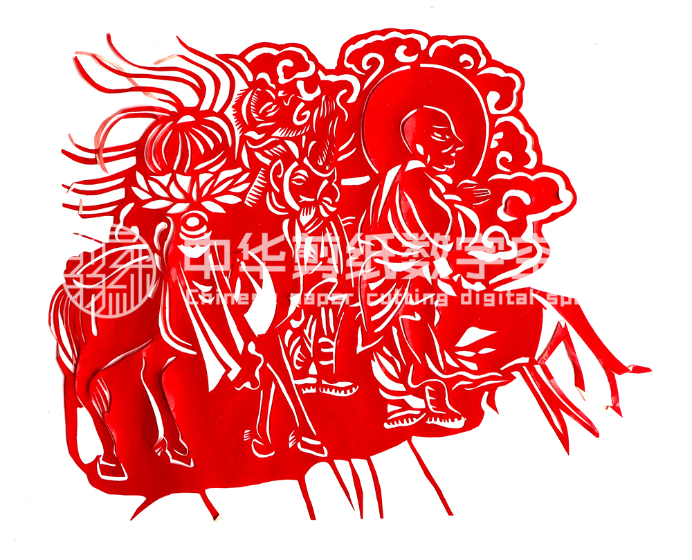 曹书权姊妹七人,他排行老五,上有三个姐姐一个哥,下有一个弟弟一个妹妹。曹书权4岁时就被姐姐带着到学校上学,15岁时高中毕业后回家务农。上学时特别喜欢画画、剪纸、泥塑、传统庙宇彩绘。15岁时走向社会后他便开始了剪纸的学习和制作。那时老人们描述说民俗用剪纸的大致样子,他便按照老人们讲的纹样先画出来,经老人们修改,没有啥问题后再剪出来。丧俗剪纸整体比较粗犷。村中当时有一位70多岁的老人梁师傅,他手巧,懂民俗,对民俗用的剪纸非常娴熟,经常剪窗花、糊社火用的龙头、丧俗上的轿。他跟着梁师傅学会了剪缠枝莲花、葡萄、石榴等图案。缠枝莲花清净纯洁,葡萄石榴象征多子,这些在丧葬纸扎工艺中常用。