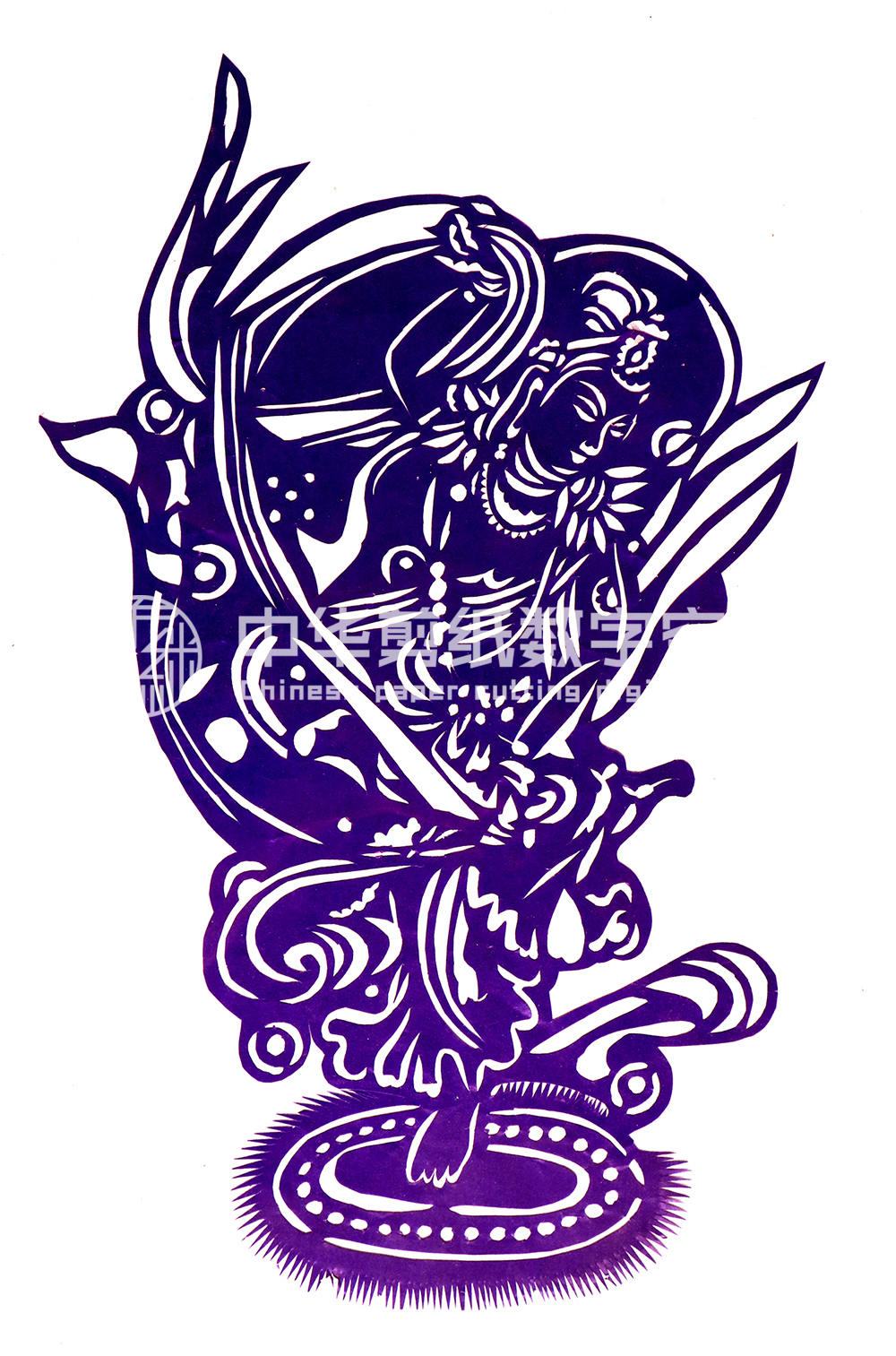 曹书权姊妹七人,他排行老五,上有三个姐姐一个哥,下有一个弟弟一个妹妹。曹书权4岁时就被姐姐带着到学校上学,15岁时高中毕业后回家务农。上学时特别喜欢画画、剪纸、泥塑、传统庙宇彩绘。15岁时走向社会后他便开始了剪纸的学习和制作。那时老人们描述说民俗用剪纸的大致样子,他便按照老人们讲的纹样先画出来,经老人们修改,没有啥问题后再剪出来。丧俗剪纸整体比较粗犷。村中当时有一位70多岁的老人梁师傅,他手巧,懂民俗,对民俗用的剪纸非常娴熟,经常剪窗花、糊社火用的龙头、丧俗上的轿。他跟着梁师傅学会了剪缠枝莲花、葡萄、石榴等图案。缠枝莲花清净纯洁,葡萄石榴象征多子,这些在丧葬纸扎工艺中常用。