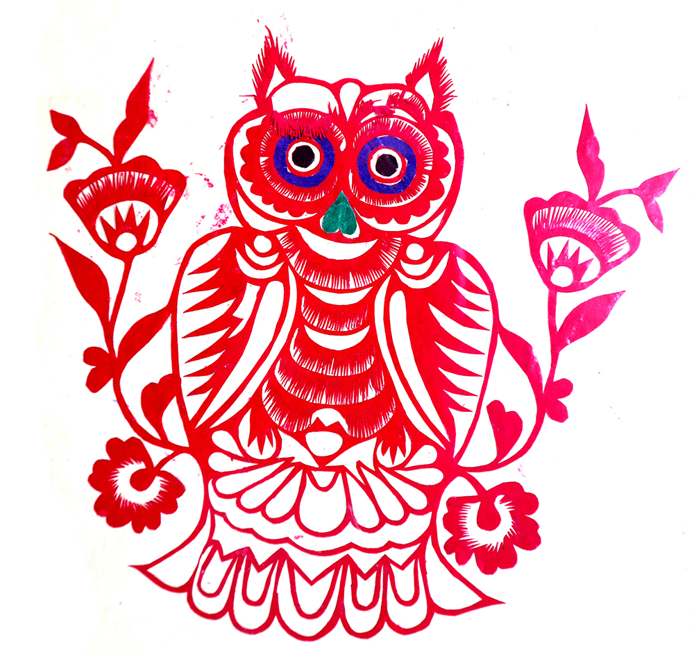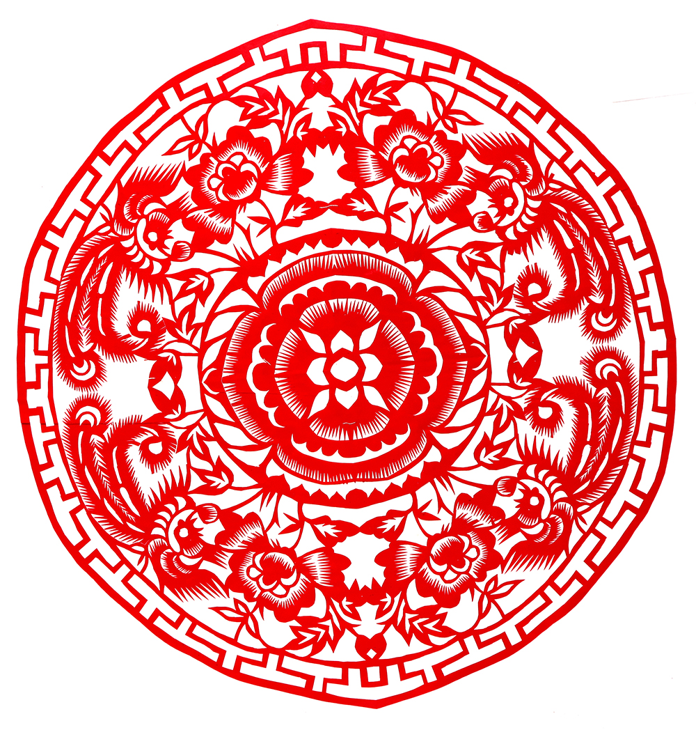 1985年,党秋芳结婚,那年20岁。公公农民,少量识字,靠务农为生。婆婆不识字,能剪能绣。丈夫曹治选,农民,初中文化程度。婚后生有二男一女。村上兴贴窗花、贴板架云子、贴炕围花,因而年年都剪。那时家里也穷,只有在空余时间剪些窗花,到腊月天拿到黄陵、田庄、灵庄、偏桥、五里镇集市上出售,卖窗花时一边剪,一边卖,剪花时周围的人围着看,大家都说剪的好,也都争着买,一年能卖四五百元。