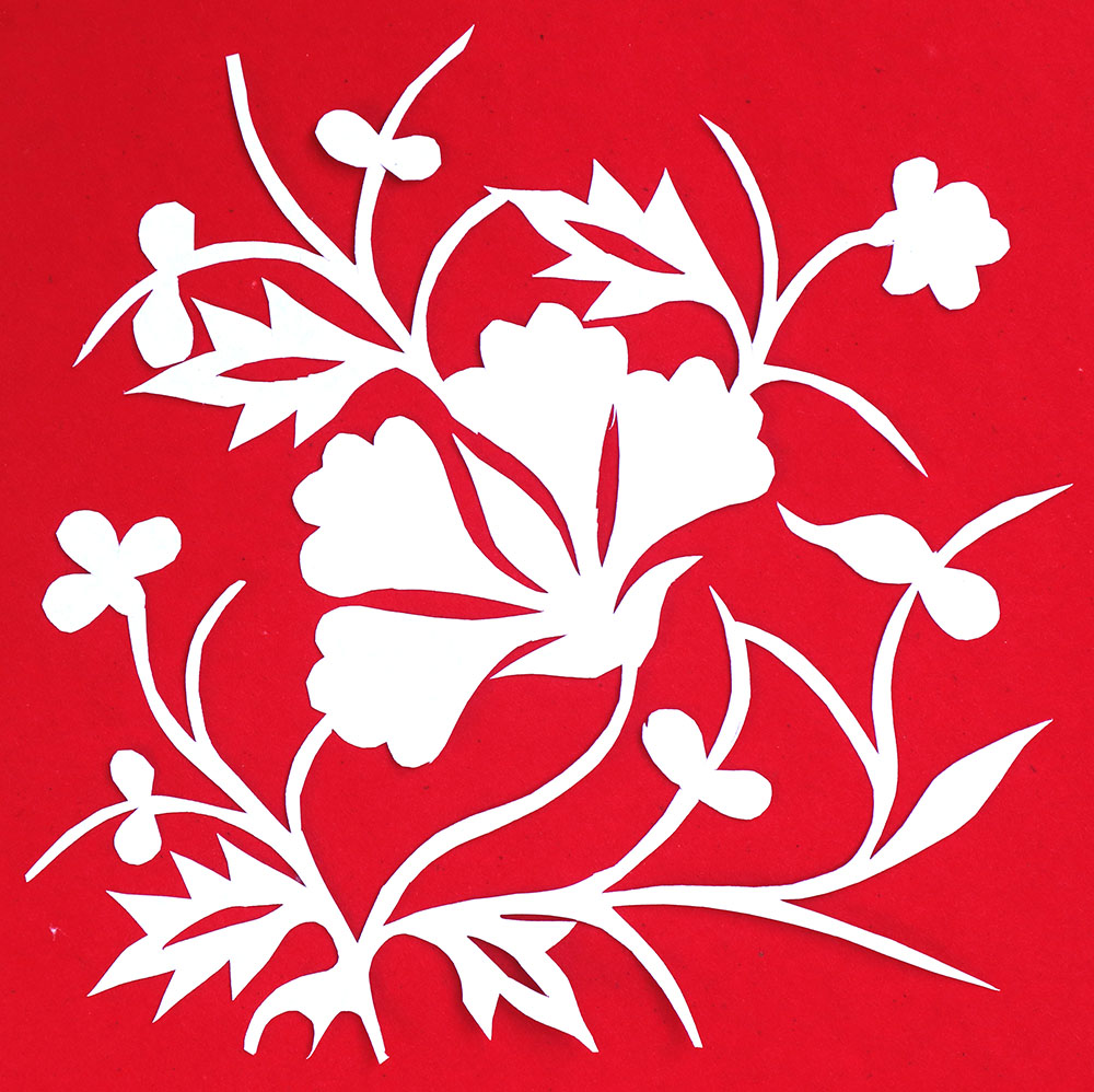 母亲去世时给她留下了很多花样,她至今保留完好,平常闲暇时,便拿出来翻看。2008年至2017年,梁林息在西安给孙女做饭,这十几年几乎没有动剪刀。2018年,她翻出母亲留给她的剪纸花样,又勾起了她对剪花的兴趣。