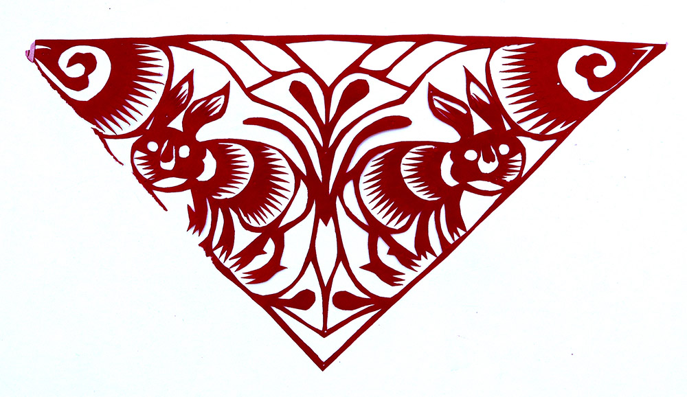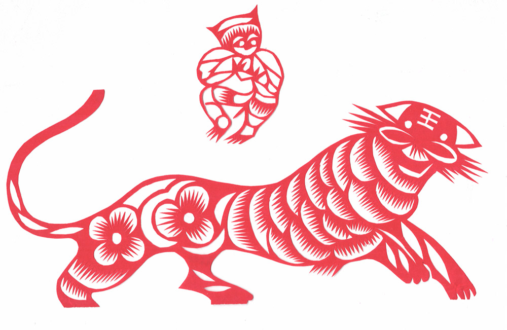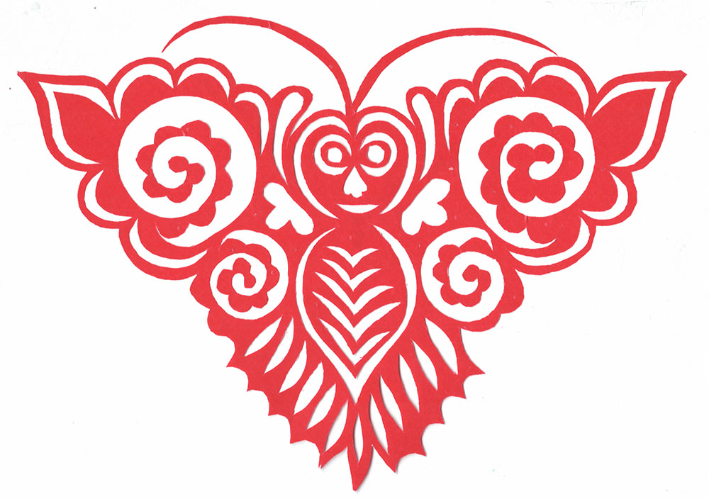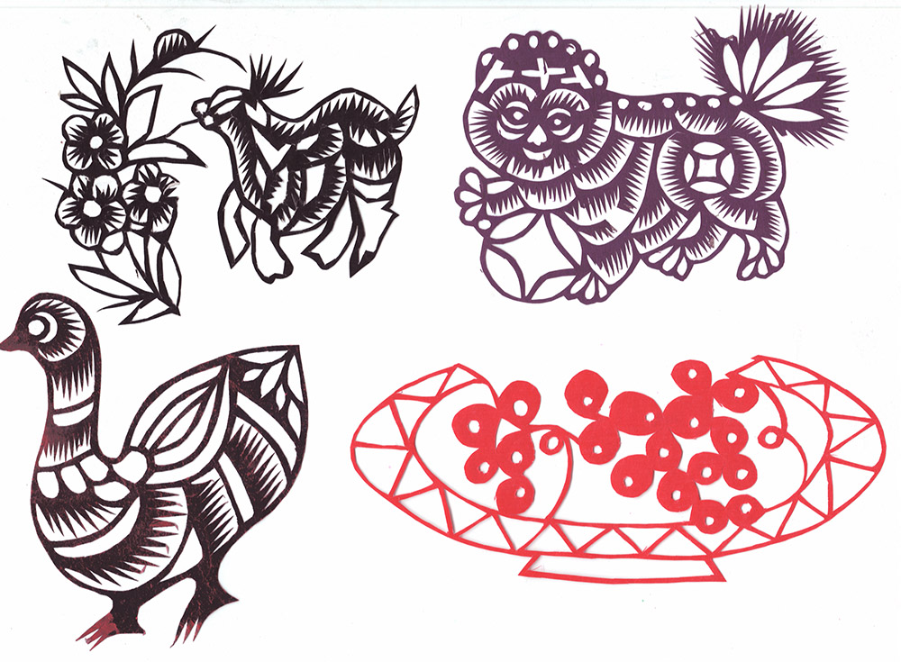 刘彩霞姊妹三人,她排行老大,下有一弟弟一妹妹。她8岁上学,上到小学三年级,因1960年粮食困难,吃不上,就回到家里。小时候母亲每年都剪窗花,她便跟在一起剪,那时小也没有什么目的,拿着剪刀就胡乱剪。母亲骂她不让剪,嫌她把纸给糟蹋了,她只好拾母亲剪下的纸角剪。稍大一些,她开始注意母亲如何折纸,如何下剪,虽然母亲没有给她说过怎样剪,但因为看得多,耳濡目染,也学会了一些。13岁时开始为家里剪窗花,母亲看她剪的还不错,也就不说不管了。刚开始学剪纸,主要是剪花草,过去的窗花都是用拼贴法剪的窗花,易于掌握,所以特别爱剪花草,后来也剪一些老虎、狮子,因为这些内容是窗花中心必不可少的内容。