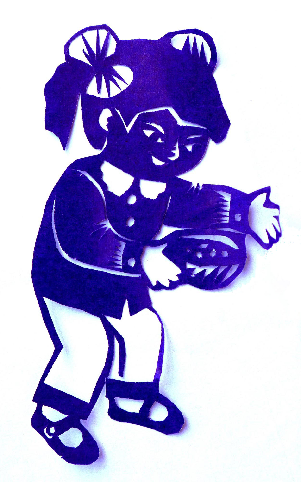 赵绒仙,女,1962年生,汉族,赵绒仙姊妹9人,她排行老五,上有二哥哥二姐姐,下有三个弟弟,一个妹妹。她7岁上学,一直上到初中。上小学时,赵绒仙就特别喜爱剪窗花,没事时,她就拿起剪刀剪。父母对于她剪纸非常的支持,因为家里过年时都要贴窗花,贴板架云子,两个姐姐在外上学,也都不会剪,过年时父母都哄着让她来剪让姐姐帮忙贴。在上学期间常为班上办学习专栏、办黑板报、剪一些花边来装饰,但大部分时间都是在寒暑假跟上三奶奶学习剪花。除了剪纸外,她还学会了扎花、捏面花,特别是捏面花在镇上是出了名的。