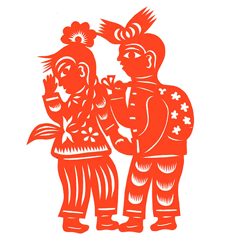 陈海莉娘家在安塞县楼坪乡上寺院村,家中兄妹四人,她排行老二,上有一哥,下有二个弟。她们兄妹四人都由外婆带大,外婆是当地的剪花、绣花能手。上寺院村春节贴窗花的民俗浓郁,每到寒冬腊月,外婆开始为春节准备各种各样的窗花,童年的海莉学着外婆的样子在煤油灯上熏花样,剜窗花。外婆见她心灵手巧,平时教她剪各种古时花样,教她绣鞋垫,绣枕顶。上小学五年级时,在外婆的指导下,为外婆做老鞋,绣老枕。外婆临终时,给她画了好多花样,还把自己积攒下的古时花样和自己的一把剪花小剪刀送给了海莉。