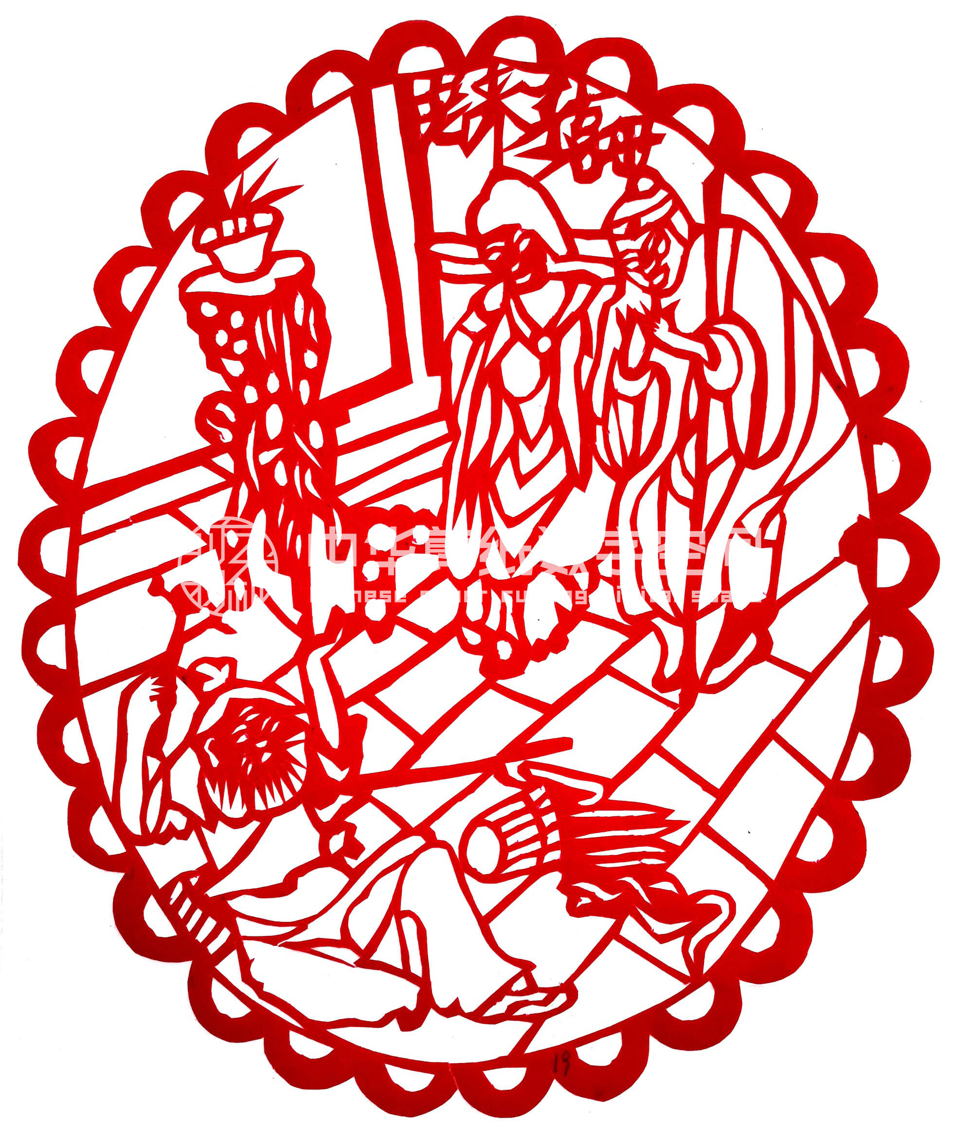 1996年,马海艳结婚,那年21岁。当时家里的经济状况一般。结婚时,她自己绣了几双鞋垫,其他的什么都没有。婆家是米脂县本地人,公公农民,小学文化程度。以务农为生。婆婆,不识字,擅于做针线活,但不会剪纸。丈夫,农民,初中文化程度,靠打工挣钱。婚后生有两个儿子。因家中没有会剪纸的人,她从小并没有专门学过,只是经常看村中的人剪纸贴窗花。2019年9月,马海艳参加了米脂县非物质文化遗产保护中心举办的剪纸培训班,学习了12天的剪纸技艺,对民俗寓意也有了一定的了解,并深深的喜欢上了剪纸。由于刻苦好学,她进步很大,创作了多幅优秀的作品,部分被米脂县“非遗”中心收藏。