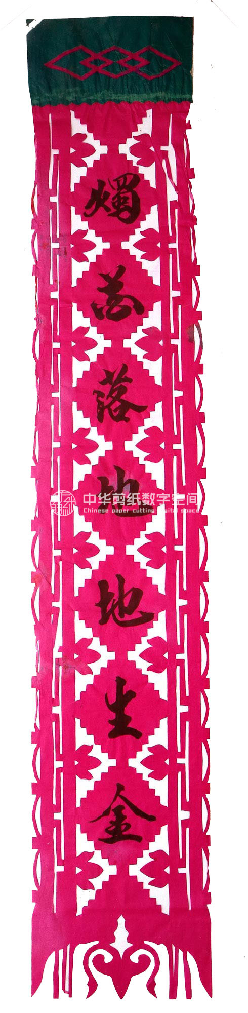 郭巧花说,她平常就爱看别人剪花、绣花,爱看人家门帘上的花,被单上的花,书上印的花,看上一眼就记下了。她在20出头时,村上结婚嫁女的人家都请她去剪喜花,缝被褥。60岁时开始学剪庙上用的剪纸,这一剪便放不下了,又是到处请着给剪。剪佛前吊子要用紫色,紫色是道教中的正色,有紫气东来的寓意。神堂和经堂用的幡一样,都是五色代表五方。道教门符一堂五幅,用黑白红黄青五色剪出,佛教门符一堂五幅都用黄色剪出。神幡是挂在主神两边的幡,上面还要写上对联。神幡要用线拴,这一拴就把运气翻过来了。五色旗插在院中的五谷斗中,神仙看到彩旗才会下凡参加庙会活动,庙会剪纸较多的传承着传统民俗文化的文化内涵。