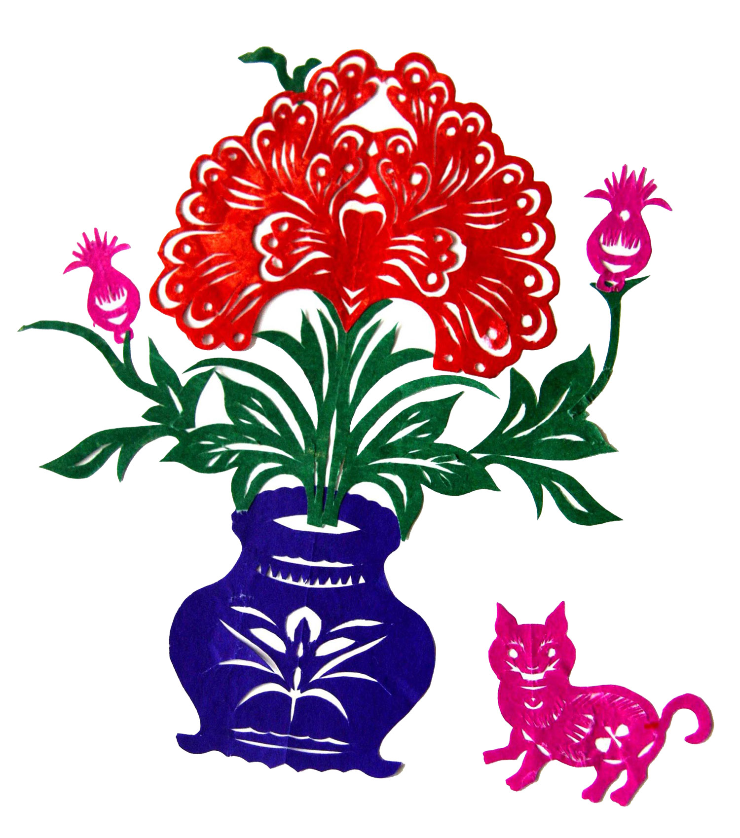 1978年穆玉艳出嫁到大荔县安仁镇小坡村。之后家里剪窗花、剪清明门门的事婆婆就交给了她,村上凡娶媳妇或嫁女的家户都请她剪裹布花、脸盆花、盖碗花、笸箩花、顶棚花等喜花。村上有老人去世,请她去剪纸幡、糊麻官,给棺木上剪大公鸡等。