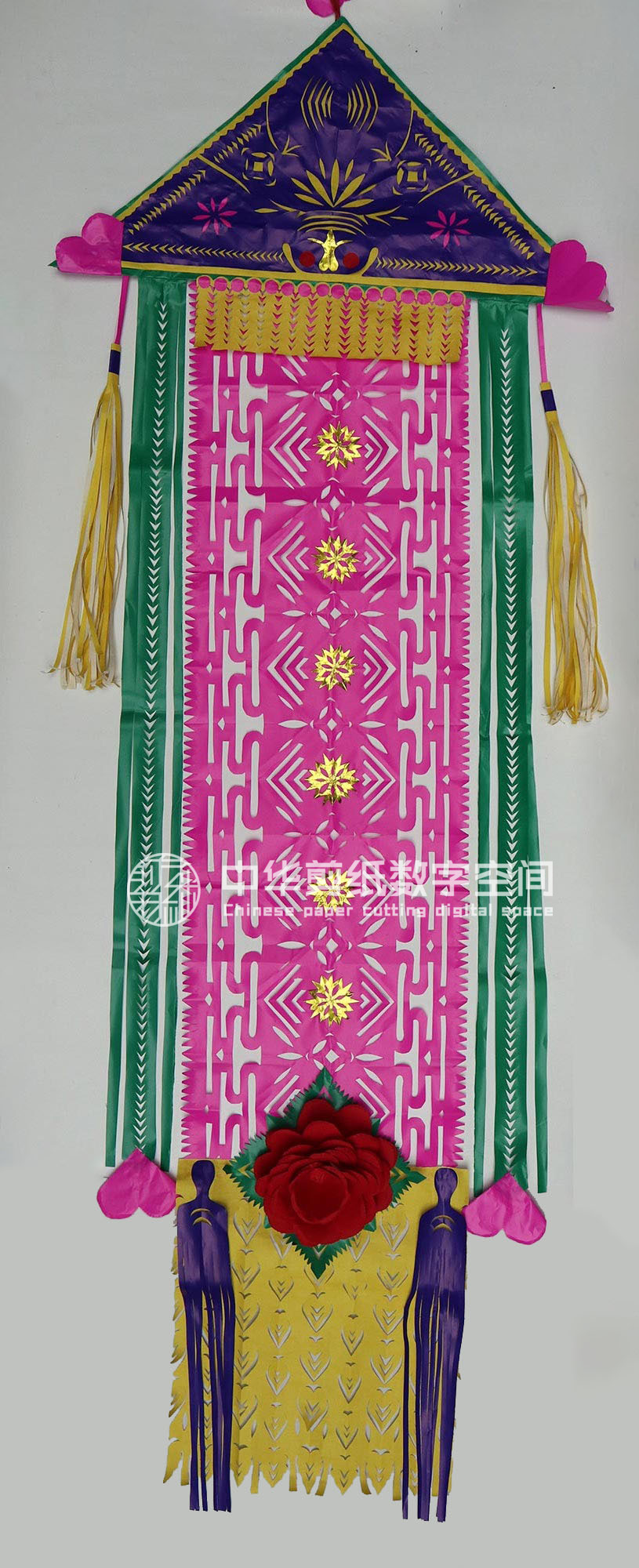 赵陕军自小聪明伶俐,爱画画,爱拉二胡, 赵陕军的道场剪纸,较好的传承了宗教剪纸的样式,剪法和其艺术特点,他又对周边乡镇的道场剪纸进行过调研,对其纹样的用法寓意了解得较多,因为剪出的剪纸多带神秘色彩,再是剪工精巧细腻,风格大方质朴。赵陕军说:“剪道场剪纸,心必须虔诚,不可有杂念,尊神就是尊人,尊人就是尊神。”