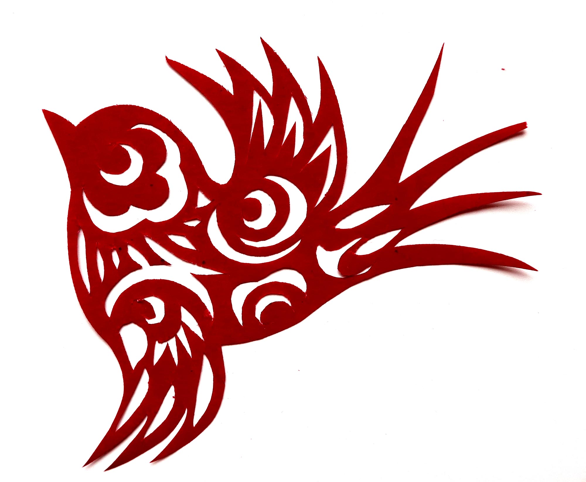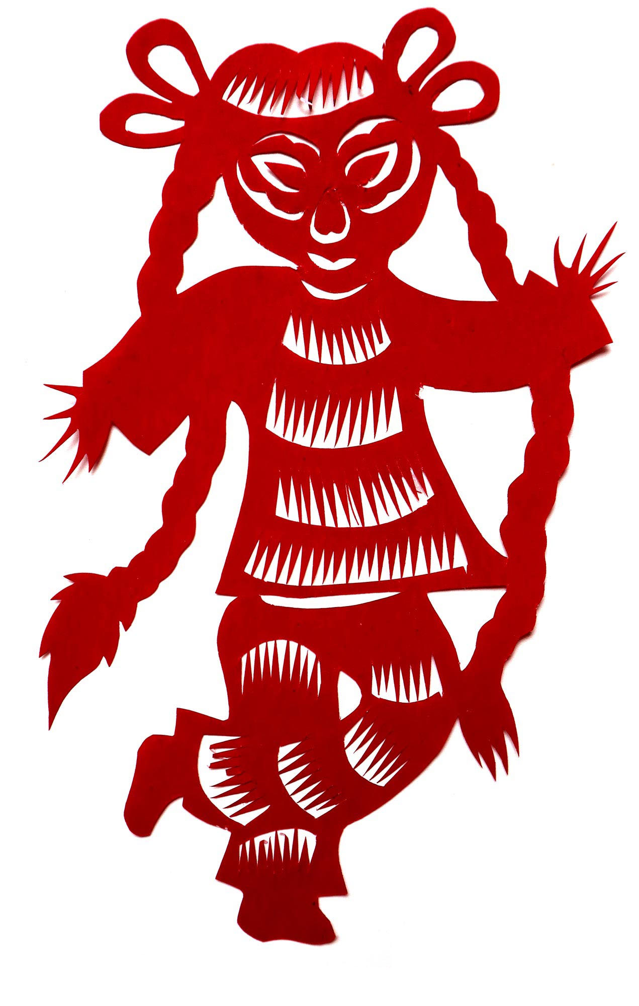高芳芳,女,1989年10月18日生,汉族,高芳芳姊妹三人,她是老大,下有一个弟弟一个妹妹。她6岁上学,一直上到初中,她七八岁时只是照着剪,到后来就不需要样子,看着就能乱剪,想剪个啥就剪个啥,没有什么目的性,有时剪树叶,有时把不用的废作业本撕下来剪。祖母经常让她注意观察身边的动物、花草、人物,她按祖母说的没事就坐在院子观察鸡、鸭、牛的动态,对她剪纸的造型有了较大的提高。
