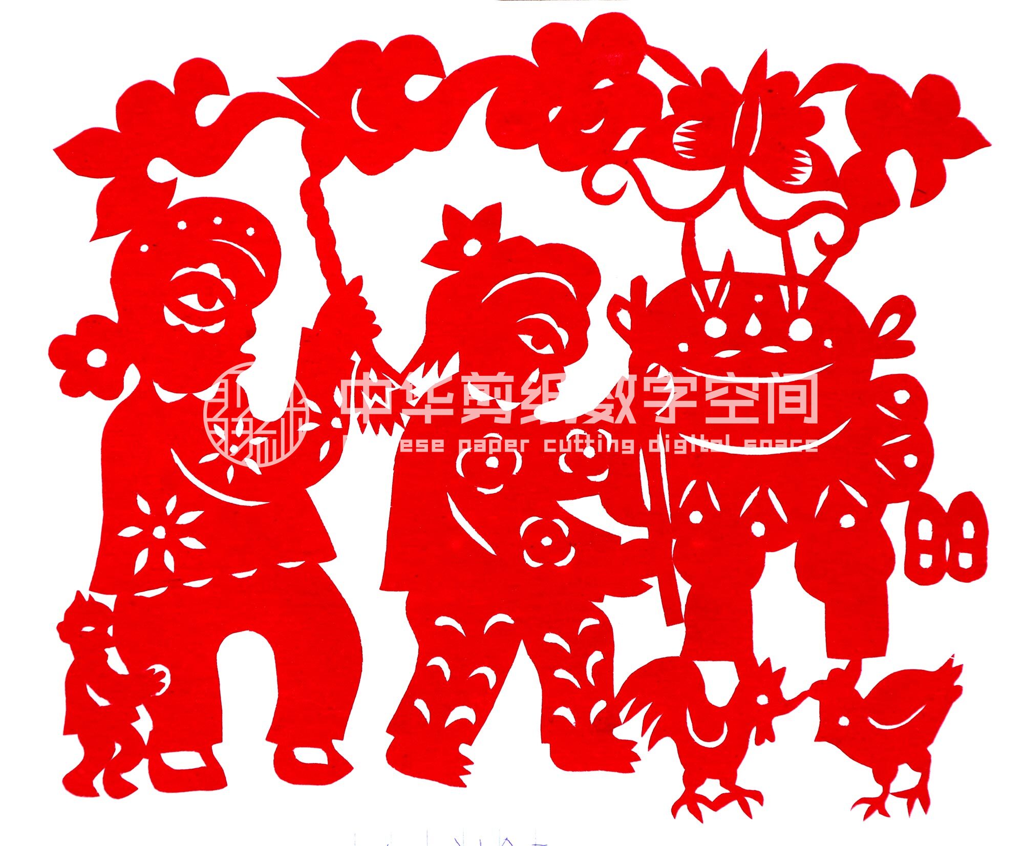 刘合云,1969年生,女,汉族,刘合云姊妹7人,她排行老六,上有两个姐姐,三个哥哥,下有一个弟弟。刘合云从小喜欢剪纸,母亲剪花样时,她就爱看爱学,一开始学是先用铅笔照母亲给的样子画好,然后再剪,但没有拓过样子,内容大多是鸟、花草、拉手娃娃、扫天媳妇,也有枕头顶花样、鞋垫花样。母亲说哪个花剪的好,她就贴在炕墙上。那时剪纸用的是做针线活的大剪刀,家里没有专用的剪花小剪,不管剪窗花还是剪花样,都用大剪刀。剪小窗花时剪不细,剪出来的窗花较为粗糙,但能剪的流畅大气,结婚后才自己买了把小剪刀。