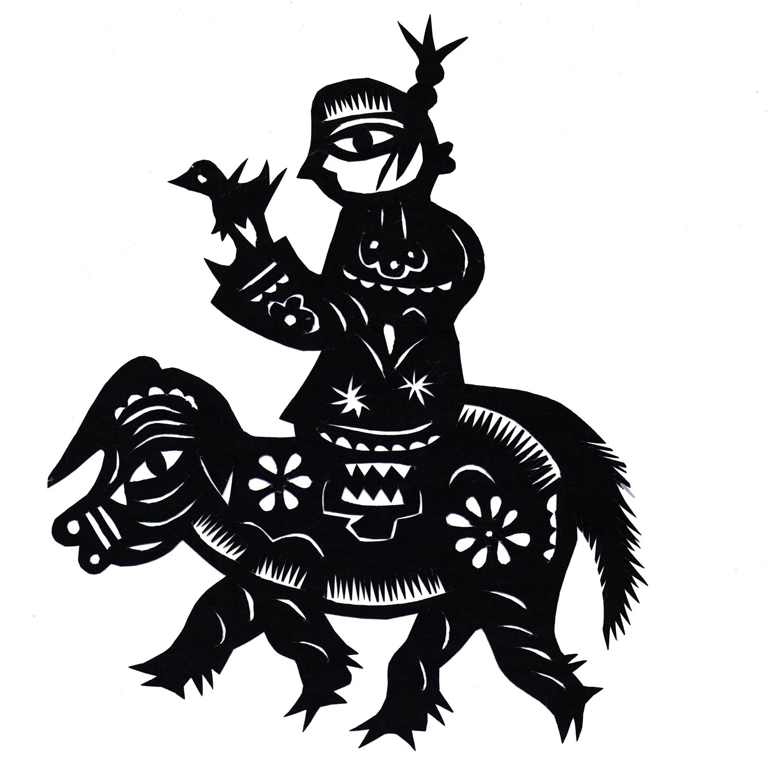 1969年赵英芳结婚,结婚的嫁妆都是自己剪,自己绣,自己做。丈夫是个铁匠,对她剪花非常支持,每逢过年,家家要给灶神土地神糊袍,由于她是个剪花巧手,一巷子的人家都请她剪糊神袍,一天忙到晚。平时巷子有结婚或嫁女的人家,都要请她剪喜花,她再忙也误不了大家的事。