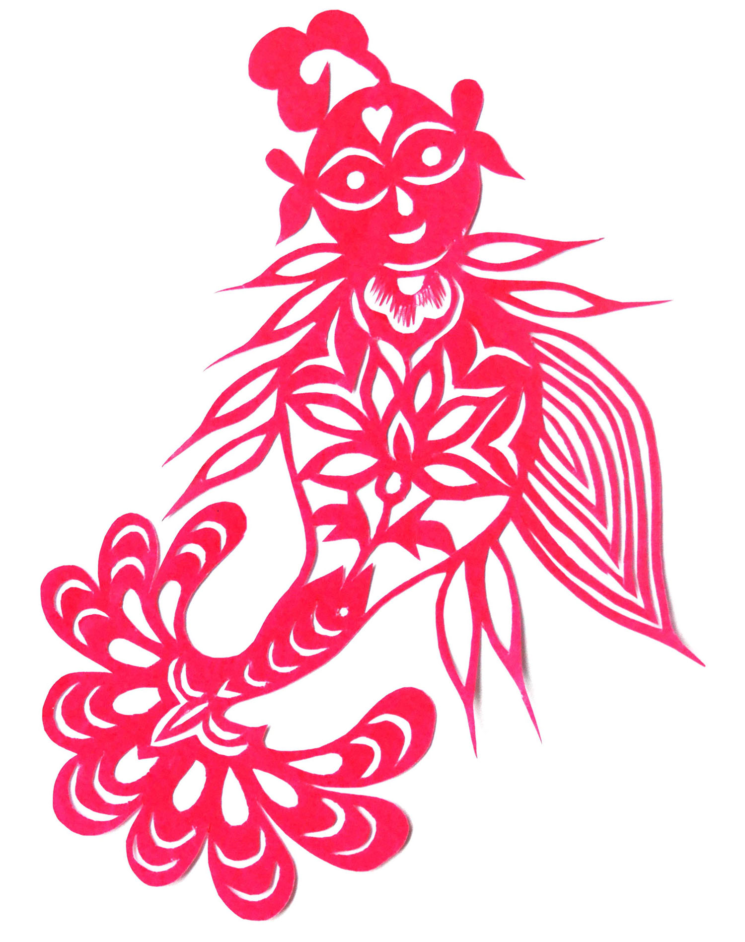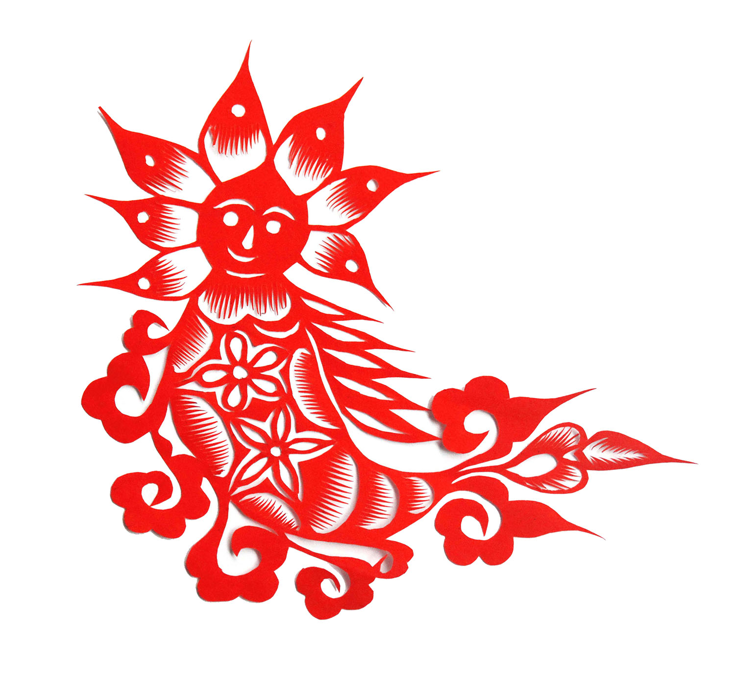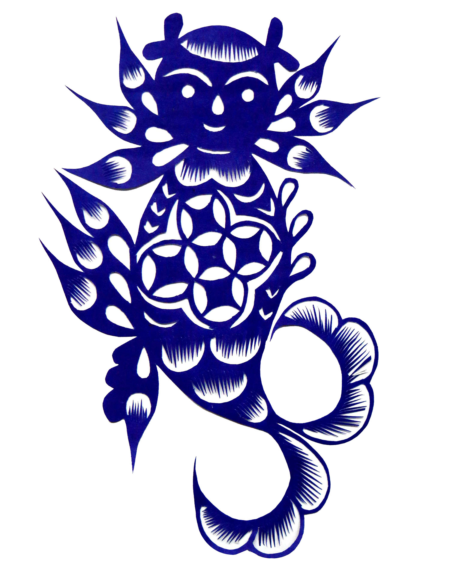 韩金花小时就喜欢剪花,母亲教她怎样折纸怎样叠纸,教她熏花样,剪窗花。她第一幅剪“鱼吐莲”,剪成四不像,让母亲骂了一顿,但骂过之后母亲还是耐心给她教。母亲剪好多花样让她拓着剪,照着画。那时全家11口人,母亲是小脚,不能下地干活,全靠父亲一人在地里劳作,生活过的十分艰难。想剪花,家里找不到纸,她便拾学生废弃的旧作业本。春节时,把人家贴出的春联偷着撕下半截藏起来,用以剪花。一次撕人家对联时被发现,被人家骂。每到春节,家里的窗花都由她来剪来贴,同时也学会做针线活,上小学时,常帮母亲纳鞋帮鞋底。13岁时,她剪窗花已不拓别人的窗花样子剪,全是自己画自己剪。在母亲的指导下,还学会了剪刺绣花样,针扎样,鞋样等。村人需要的窗花样、绣花样,母亲都让她来剪。