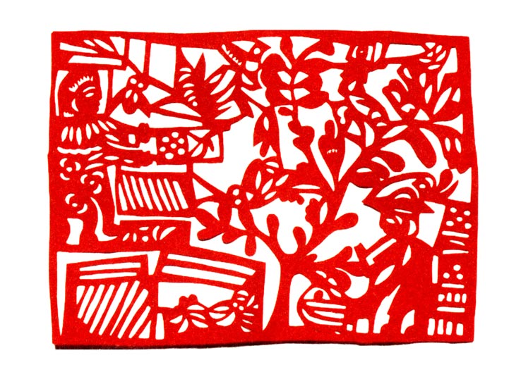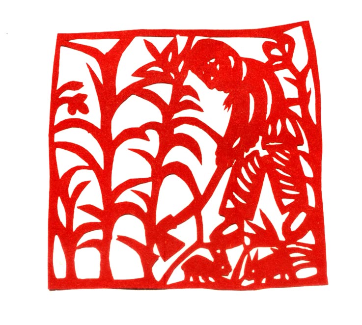 王兰畔姨妈是庄户人家,她聪明好学,二妈是当地有名的剪花、绣花的巧手,她一心想学二妈的手艺,也要当个巧手手。那时庄户人没有闲钱买纸,她常用树叶练习剪花,到晚上和二妈住在一起,一剪便到深夜。“描龙绣凤不算巧,织布纺线纳粮草”,剪得再好也不顶饭吃,常受到二伯的训诫。