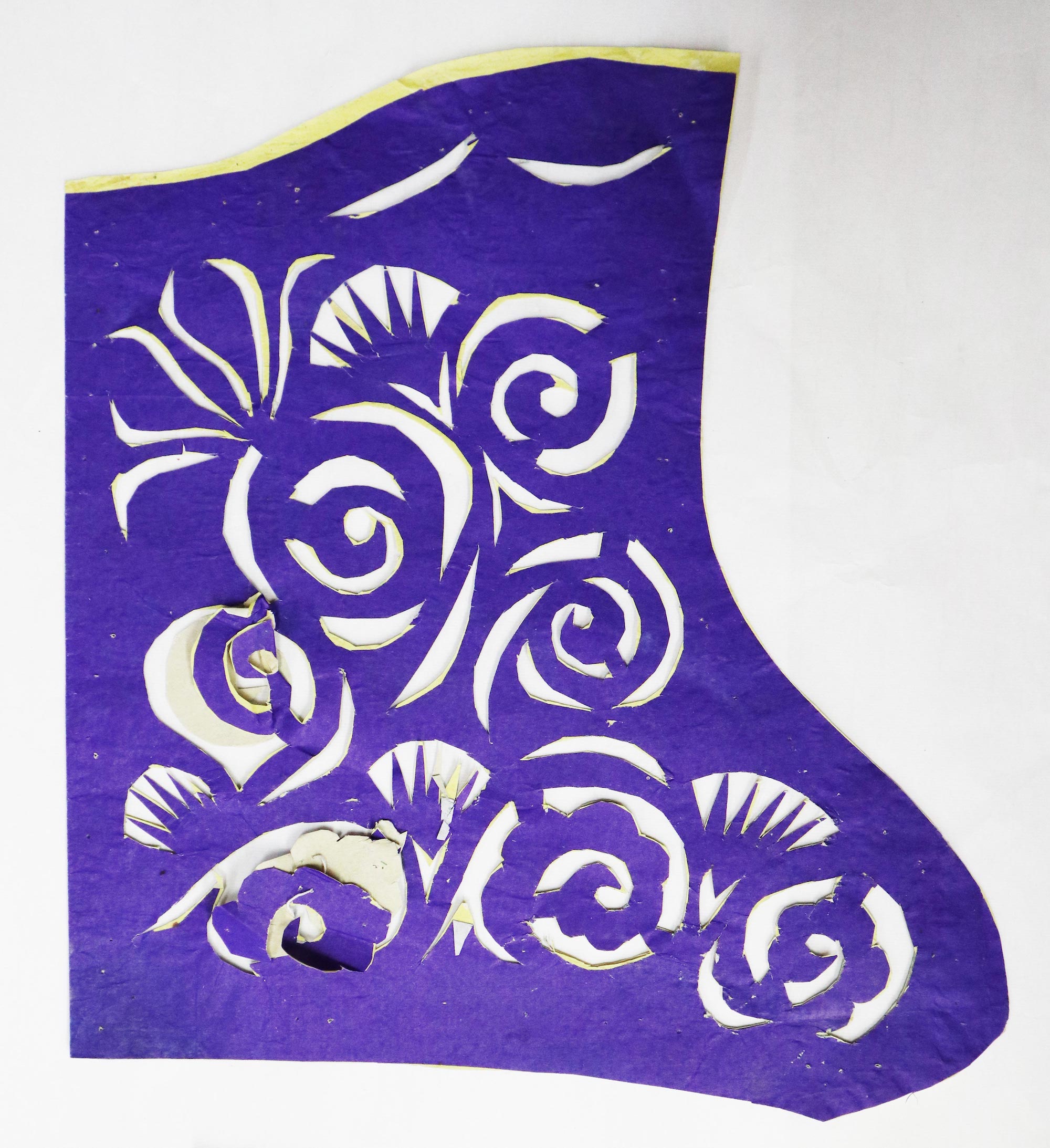 薛芳兰收藏了她近30年剪的200余幅神衣神袍上的各种花样,以及神靴神鞋花样,还有好多喜花样。