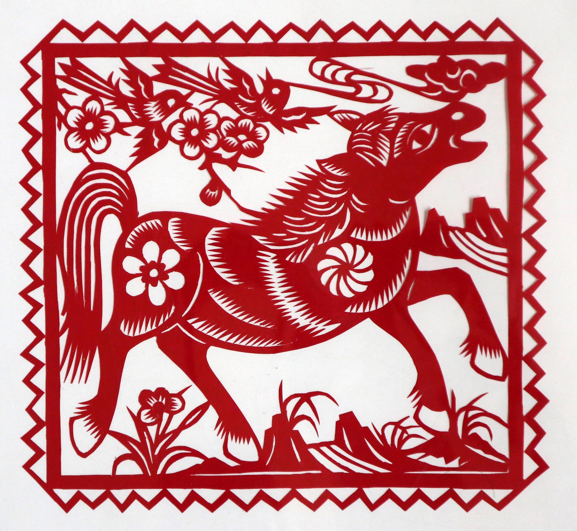 罗雪清姐弟3人,她排行老大。7岁上学,小时候经常帮家里做农活,过年时家里的窗花、墙画她与母亲一同来剪装饰家里。刚学剪纸的时候就能冒剪一些花样,记得第一幅剪纸剪冒剪的是一只《老虎》,受到母亲的夸奖。虽然从小在家看母亲剪花、刺绣,但她真正剪纸是30岁才开始的。母亲是陕西省非物质文化遗产彩贴剪纸传承人,在旬邑县名气很大,在农忙结束后,母亲从最基础的纹样,刀法,到构图构思手把手的教她,创作时再加入自己的一些想法与感悟。这些年孩子大了,有了更多时间跟着母亲学习。