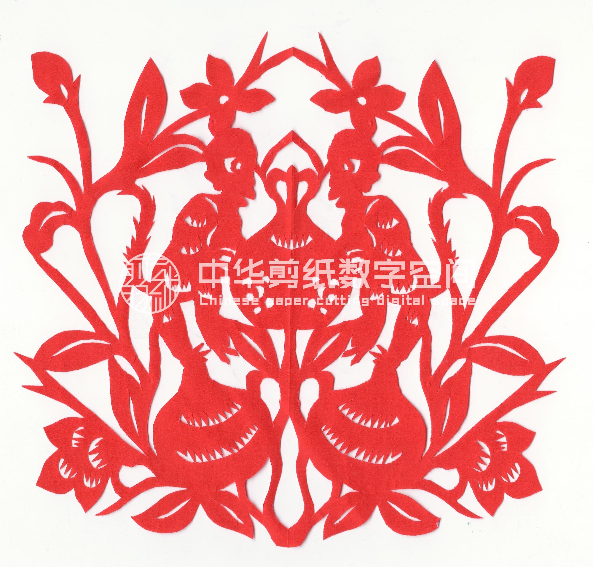 王建民,男,1947年2月生,汉族,王建民家是当地老户,祖辈农民。父亲没有手艺,靠种地为生。母亲不会剪花,不会绣花。王建民兄妹三人,他为老小,上有两个姐姐。王建民自小喜爱剪纸,七八岁时学着姐姐把窗花熏成样子,然后拓样子剪。见村人有结婚的人家,喜欢去看人家贴的洞房喜花,把喜花用心记下来,回家再想着剪出来。到20世纪90年代后,家里盖起楼板房,窗子换成了玻璃窗,这才不剪窗花了。