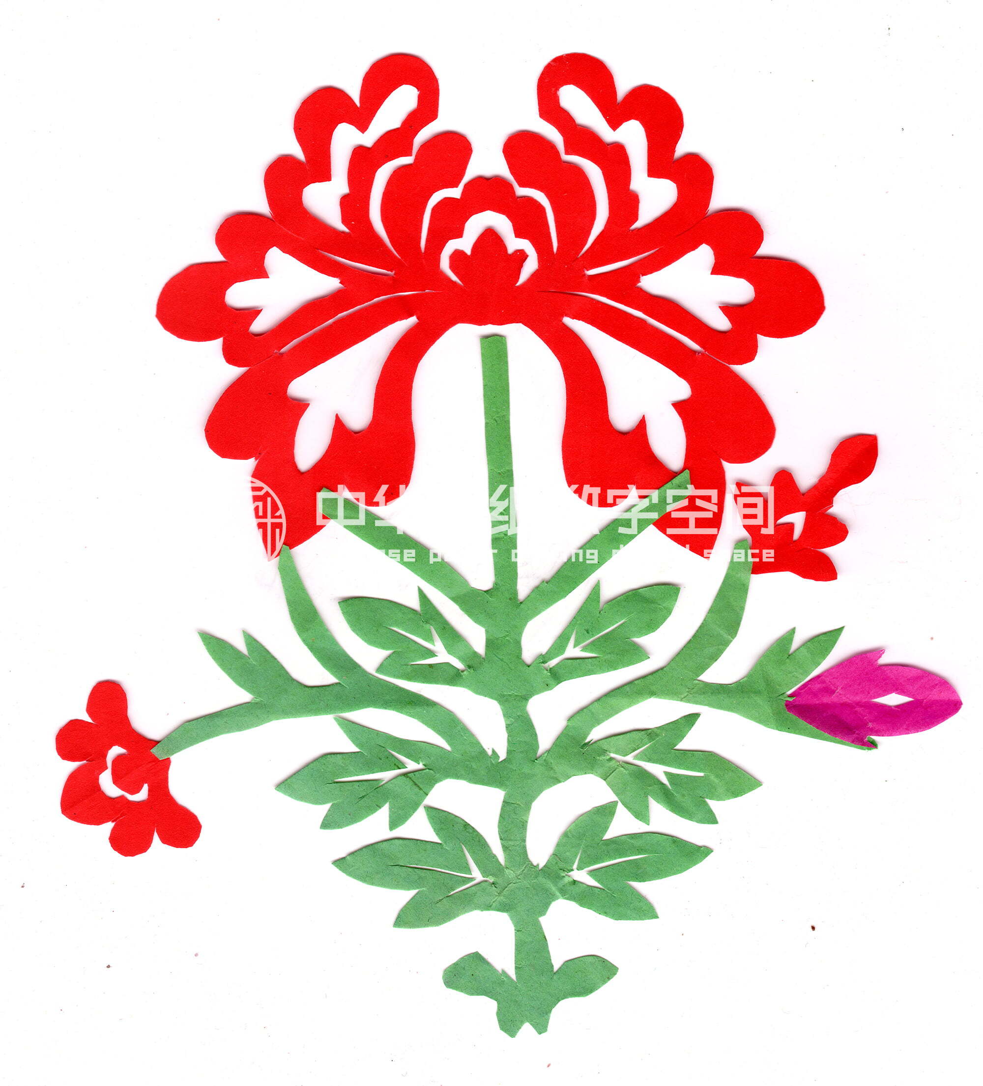 张冬菊所在的八度镇大力村,距县城55公里,山大沟深,偏僻闭塞,村上的房屋和周边环境至今仍保持着上世纪70年代以前农耕文化时期的状况,唯一有一点现代意韵的是一条通往县城的村级水泥路。张冬菊的家是土院、土屋、土炕。木格窗中贴着艳丽的窗花,窗花中除传统的花鸟动物外,还贴有40年前文化革命时期流行的“忠”字图案。张冬菊对传统民俗文化比较精通,村里的红白事他主动前去张罗。她说,结婚时剪喜花布置新房,必须要请全命人,喜花图案内容以花草为主,鸟鸟只剪“喜鹊登梅”,“鸳鸯戏莲”,其它鸟鸟不能剪,更不能剪公鸡,公鸡爱斗架,怕娶回的媳妇嘴尖毛长,夫妻吵嘴斗架。喜花也不剪兽畜动物,特别是猫,过年都不贴,认为猫同毛鬼神的毛谐音,贴上猫怕引来毛鬼神,家里干什么事都不顺。20世纪90年代,大力村东头的一座旧庙被村民们重新修建起来,每年在春节和庙会期间,张冬菊领着村中妇女剪门旗、经幡、五色旗、五谷斗以美化神庙,烘托节日气氛。她说庙上用的门旗为黄色,一般用折剪法剪出传统的贯钱、万字或长寿字,也可以剪花草等图案。五色旗代表五方神,东方为青帝,北方为黑帝,西方为白帝,南方为赤帝,中央为黄帝。五色旗插在五谷斗上,牌位书“三官大帝、八界十方之神位”等。张冬菊还懂巫术文化,谁家娃受到惊吓或得一些怪病,村人都找她剪五色钱串串,剪人剪马等,为娃禳病叫魂。