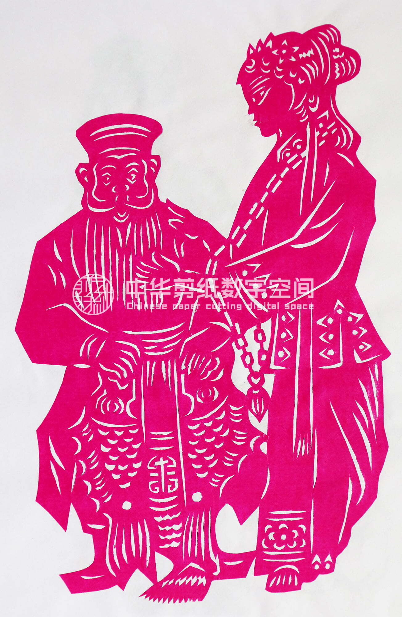 刘普强长期担任校长一职,他怕剪纸创作有不务正业之嫌,剪纸很少在外界展出。退休后时间充裕,他把剪纸作为自娱自乐的文化方式,经常帮村人剪喜花,过年为村人剪门笺。每到村上庙会期间他为村上庙会剪神幡,五色旗、门笺等。