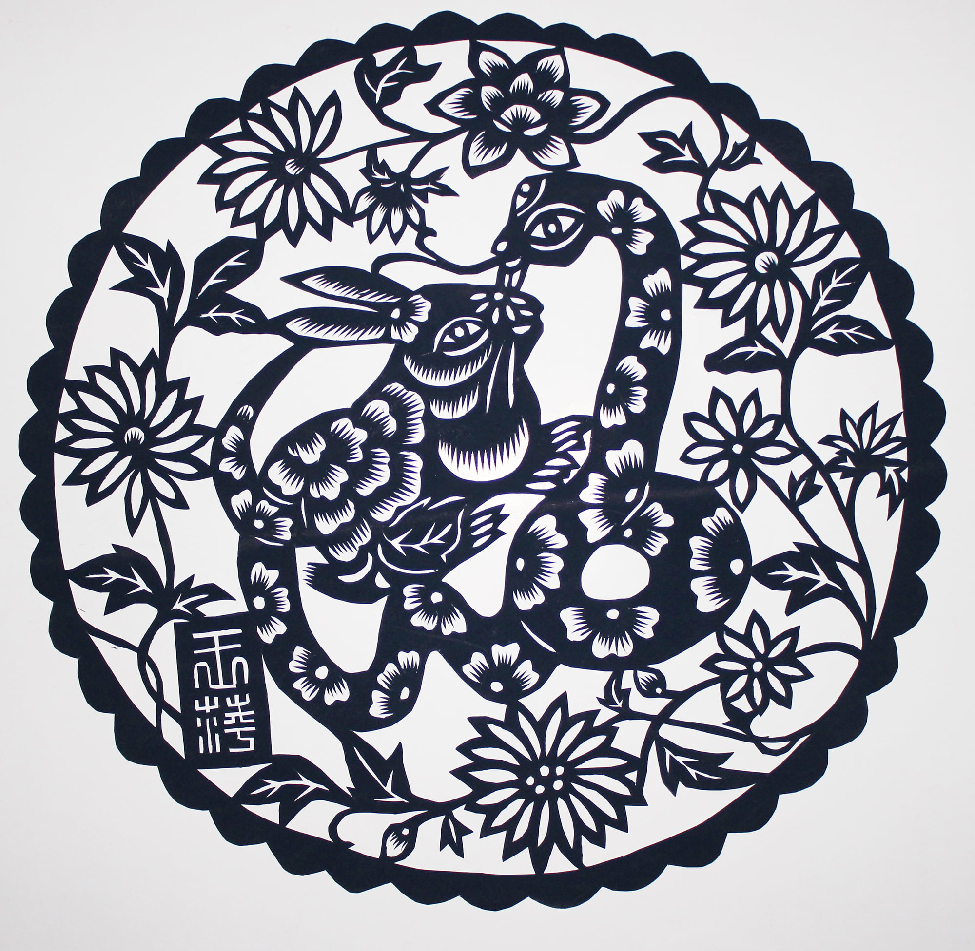对王萍剪纸影响最大的是铜川市宜君县剪纸能手王改银,那是在原铜川市计划生育局组织的一次全市宣传员采风活动中,给她安排的被采访对象是王改银,记得当时一走进王改银的家,犹如走进了剪纸的世界,一幅幅精雕细刻、做工精美的剪纸作品,把一个本就不大的小屋装扮得特别喜庆。也正是这次采风让她对剪纸艺术产生特有情结悄然升起。这才真正地开始了她的剪纸人生。
