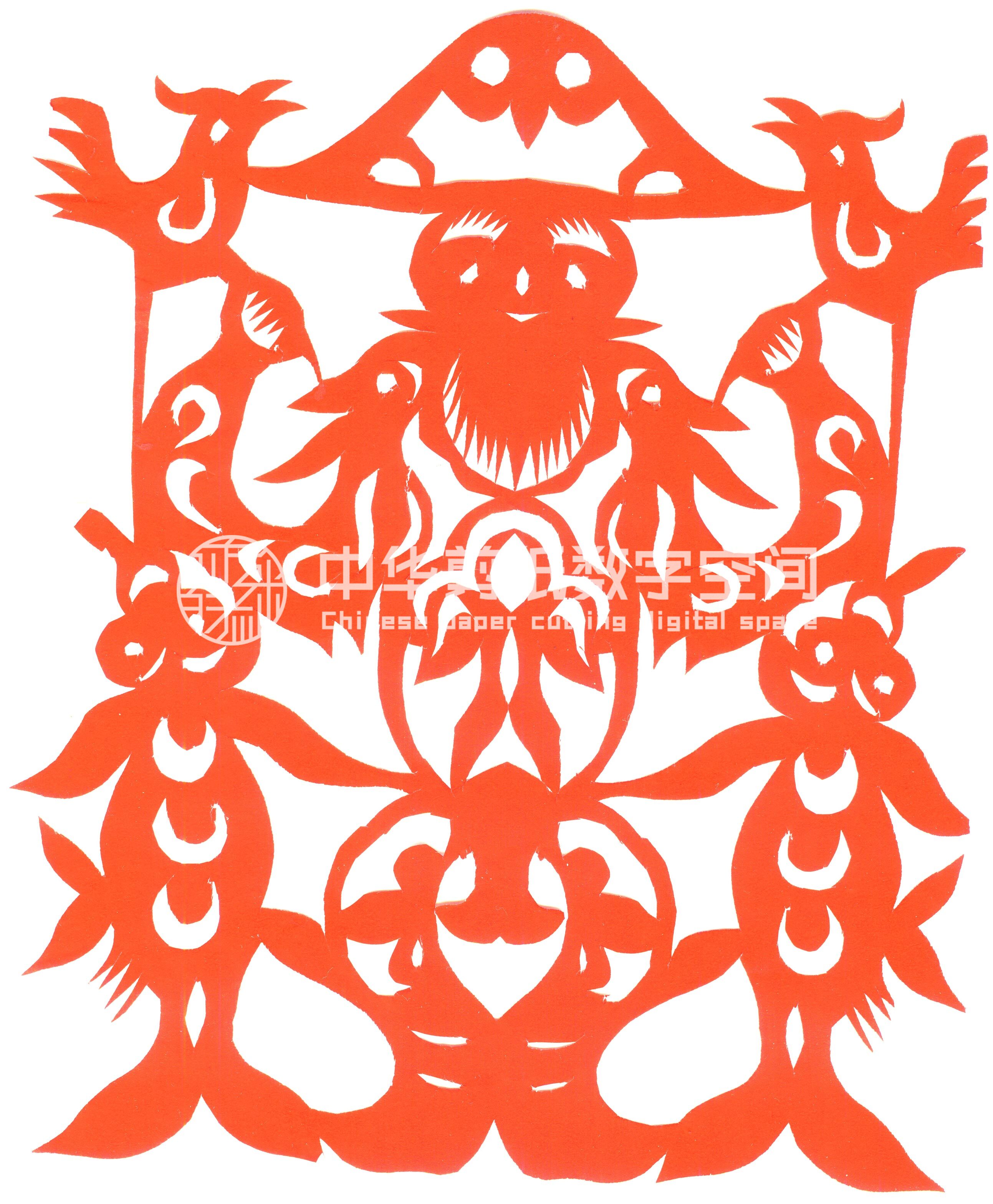 黄建雄1990年结婚,当时25岁。因为是个7、8口人的大家庭,家里经济拮据,也没有举办隆重的婚礼。妻子高中文化,在一家企业上班,岳父家是清涧人,当地老户,家在黄河畔上,岳父是一位教师,大专文化,喜欢下棋。岳母是家庭妇女,常年有病,也不会什么手艺。结婚不久单位破产,双双下岗,为了生计,他打过地砖,开过饭店,出去打工。也没有时间去搞剪纸,偶尔闲暇时剪一些解解心烦。也常常利用下雨天、晚上搞剪纸创作。起初妻子不支持不理解,但因为他长期的执着与坚持改变了态度。