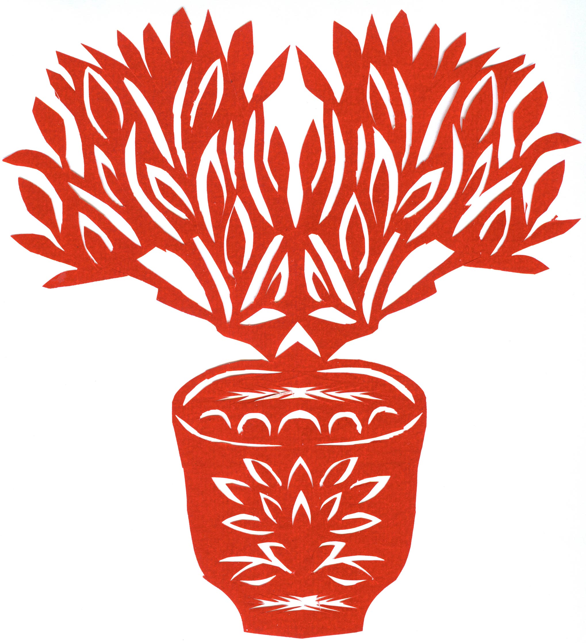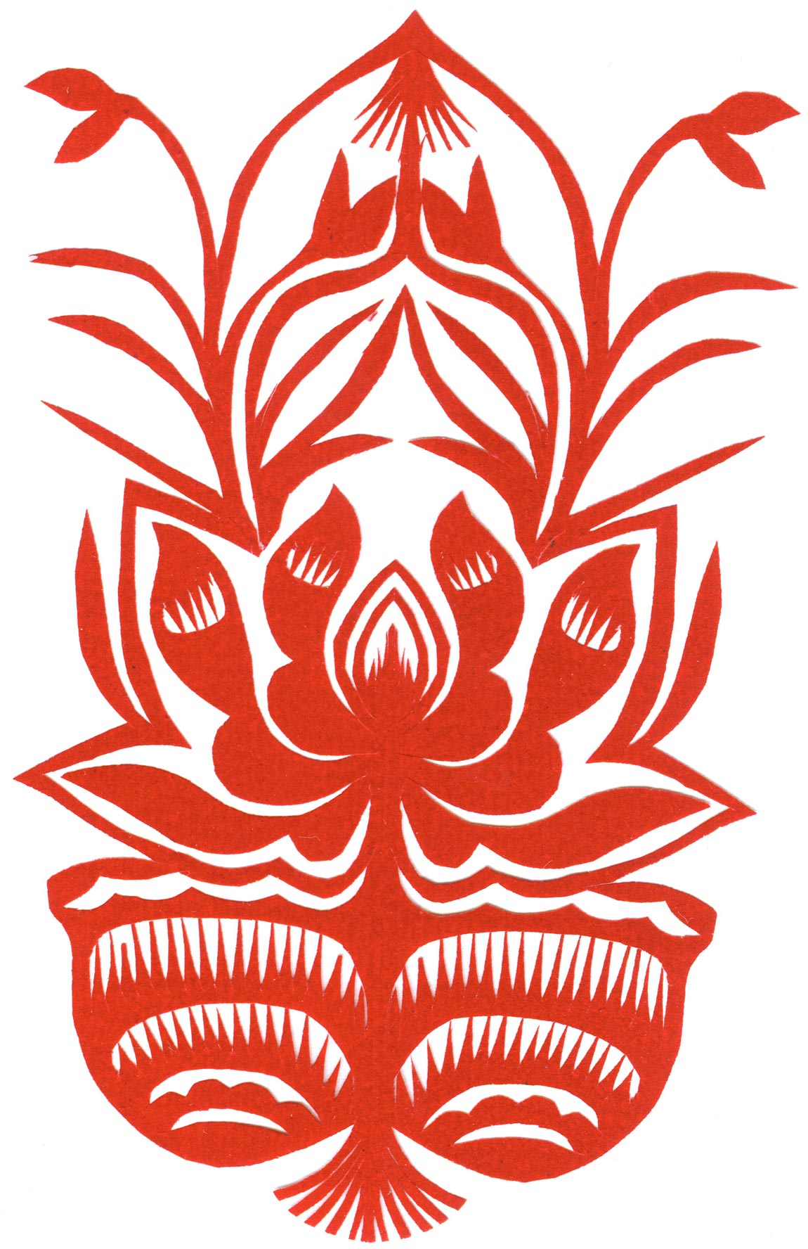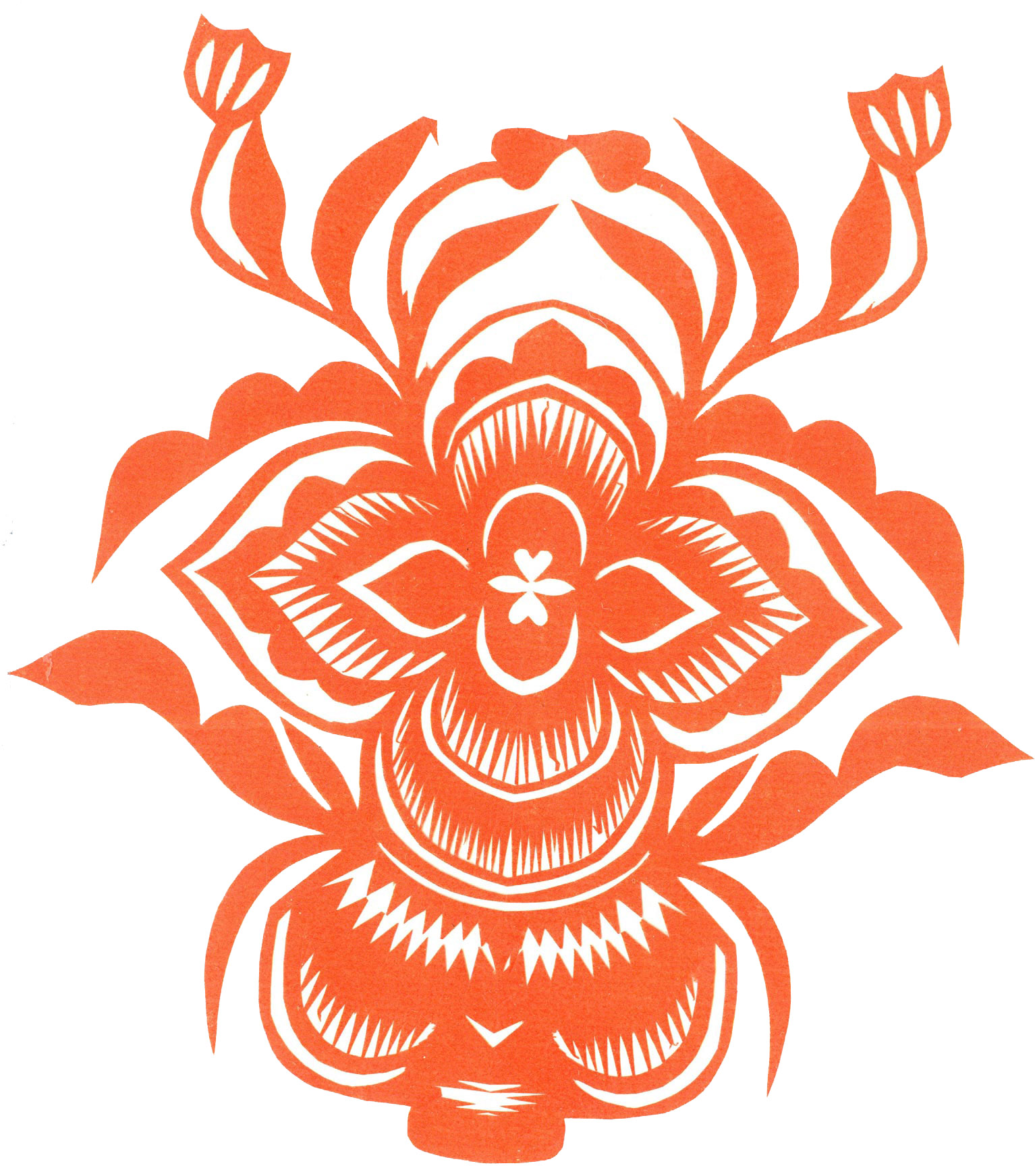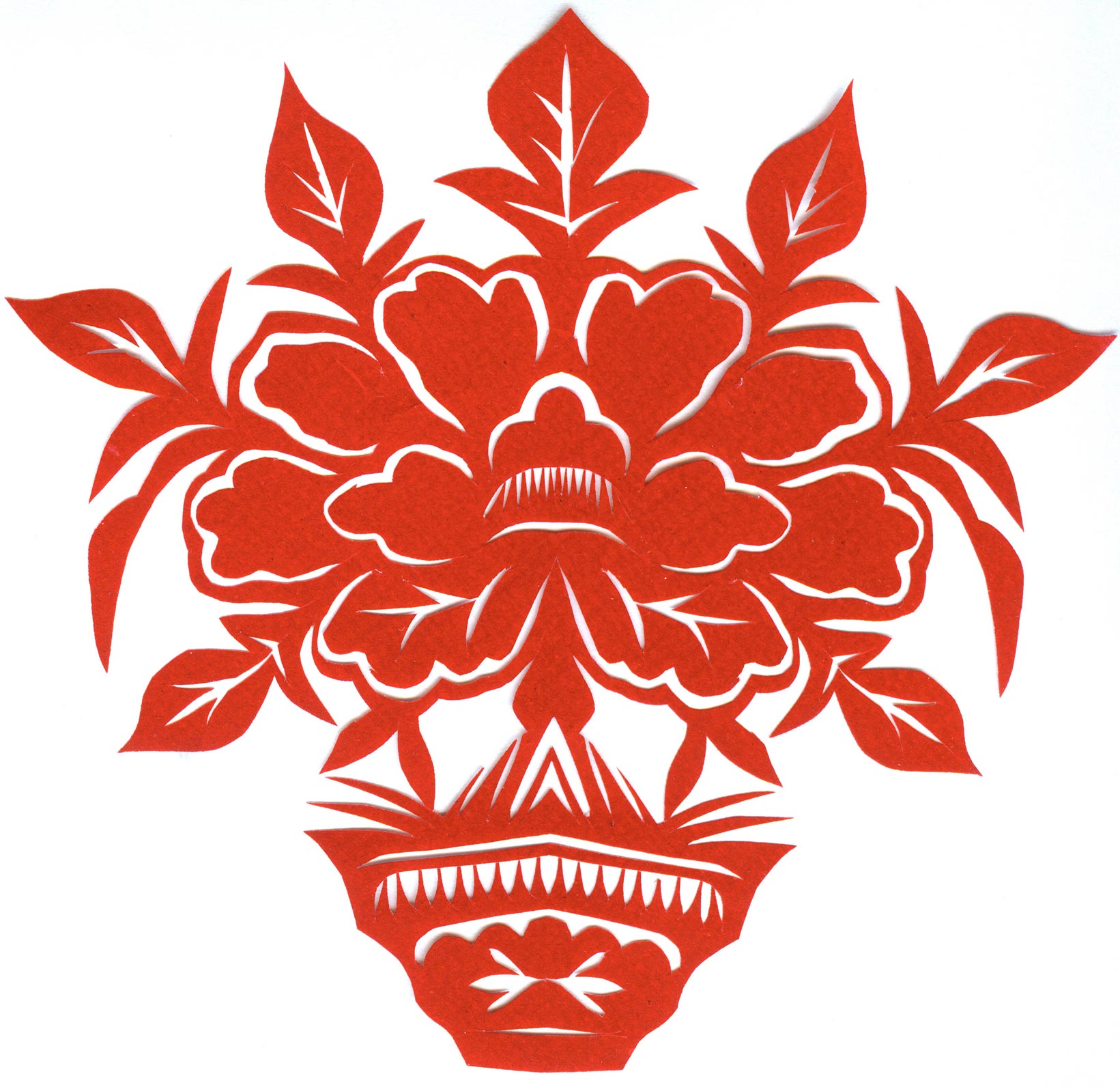 郑国翠兄妹4个,她最小,手也最巧。8岁上学,上了三年学,后因家庭贫困就辍学回家,帮家人干农活,减轻家里负担。从7岁起就看见母亲剪纸好奇,受母亲影响,开始学习剪纸,因为家里的条件不好,纸张有限,就把旧对联从外面撕下来拿回家练习剪纸。最开心的是,每年过年母亲从乡镇的商店里买好多彩色纸,村里人也都拿着纸来家里让妈妈帮她们剪窗花。因为镇上会剪纸的人很少,所以母亲在当时就是村里数一数二的巧人了。母亲剪,她也跟着剪。上学那时候就喜欢剪纸,除了上学、吃饭、写作业、做家务,经常都在废寝忘食地剪窗花,如剪狗、牛、羊常见到的动物,还有凳子、筐子、锄头,后来开始剪自行车、汽车,飞机,村里的人都说称赞她像母亲和外婆,长了一双巧手。她剪的第一幅剪纸是团花,因为喜欢团花,又没有固定的样子,靠自己脑子里想象出的画面,剪出来的样子比较新颖又好看,此后村里人每年过年便都来找母亲和她剪窗花。过年用的剪纸都是自己冒剪的,还会剪结婚和白事上用的剪纸,有时还剪一些教育宣传等方面的剪纸。同时还学会做鞋、鞋垫,都是跟奶奶学的。
