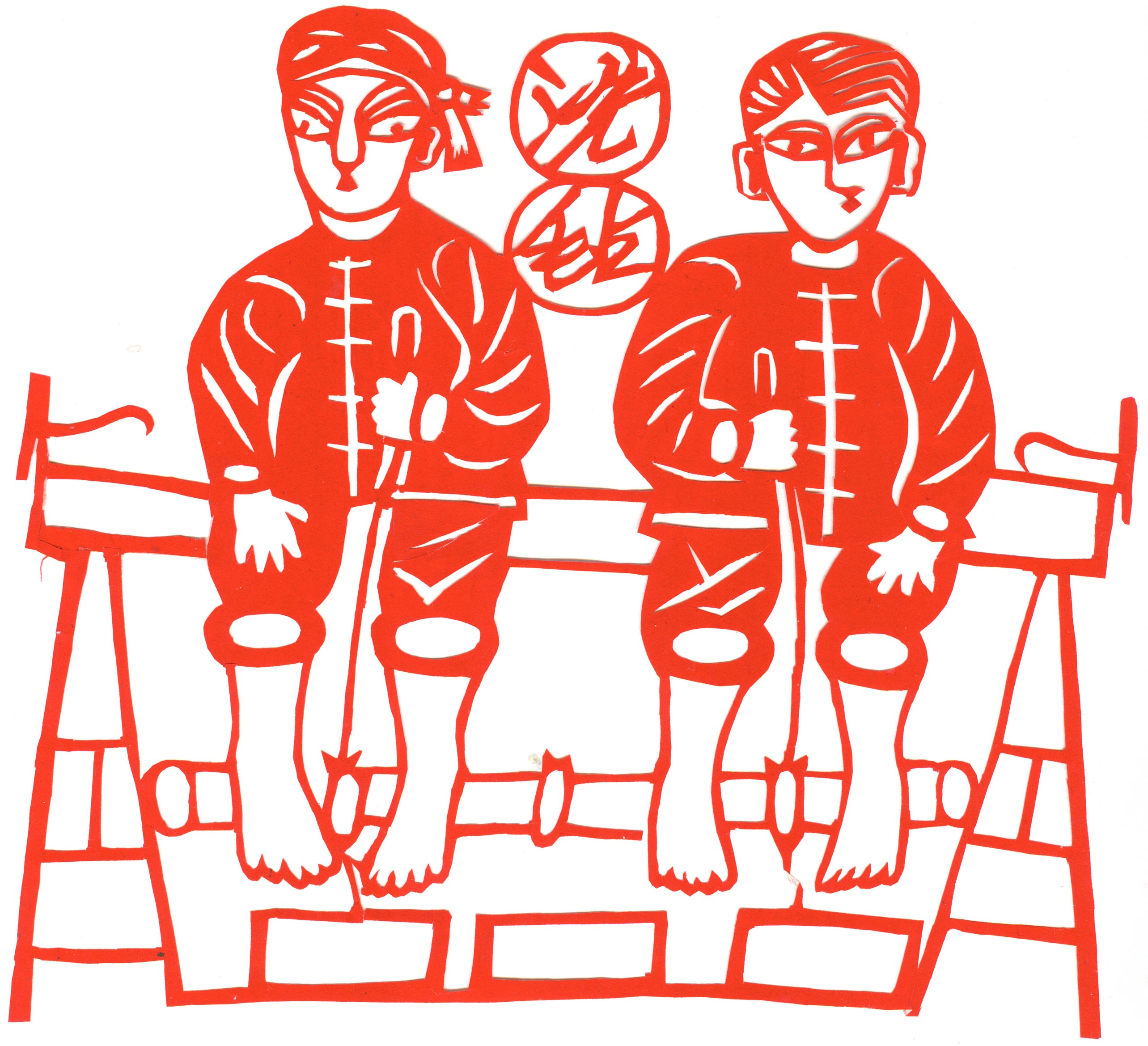 郑国翠1971年11月结婚的,当时20岁。婆家是榆阳区人。公公务农,没有上过学,也没有手艺,就爱好放羊。婆婆家庭主妇,针线活做的相当好,但不会剪纸。丈夫白怀生,小学文化,一边务农一边修农用机器养家,非常支持和理解妻子的剪纸爱好。婚后生育4个孩子。1974年大儿子出生,老人还有5个孩子没有成家,所以没办法帮忙照顾孩子。1979年第二个孩子出生,2个孩子没人带,只有靠老公一人务农,一年收入几百元。1984年,第三个孩子出生。1987年小女儿出生。孩子陆续要上学,都要花钱,丈夫的收入有限。自己想干个什么来钱的活,就开始了做豆腐,那时候豆腐1斤3毛钱,加工一锅豆腐才4元钱,虽然起早贪黑也赚不了多少钱,可至少4个孩子能够吃饱穿暖,上学念书。就这样一做就是18年,但再忙她也没有放弃剪纸,孩子们睡觉了坚持创作剪纸。