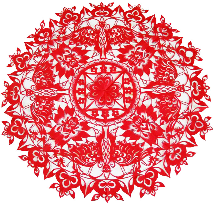 1984年2月李钟琴结婚,那年她20岁。结婚时嫁妆中的花样、刺绣基本都是自己做的。婆家是茶坊镇当地老户,婆婆公公都是农民,小学文化,没有什么手艺,以种为生。丈夫是高中文化,在一所民办小学当教师,平时就靠几十元的工资与种地来养家糊口,对妻子剪花特别支持。结婚后经常给亲朋帮忙剪花,主要给邻里剪顶棚花、龙凤等墙花,在村中大家都知道她是一位巧媳妇。虽然剪纸没有什么经济效益,但当邻里请她去帮忙红白喜事时心里就很高兴,是对她手艺的认可。结婚后生育有2个孩子,他们没有学习剪纸的手艺,长大后都出去打工了。