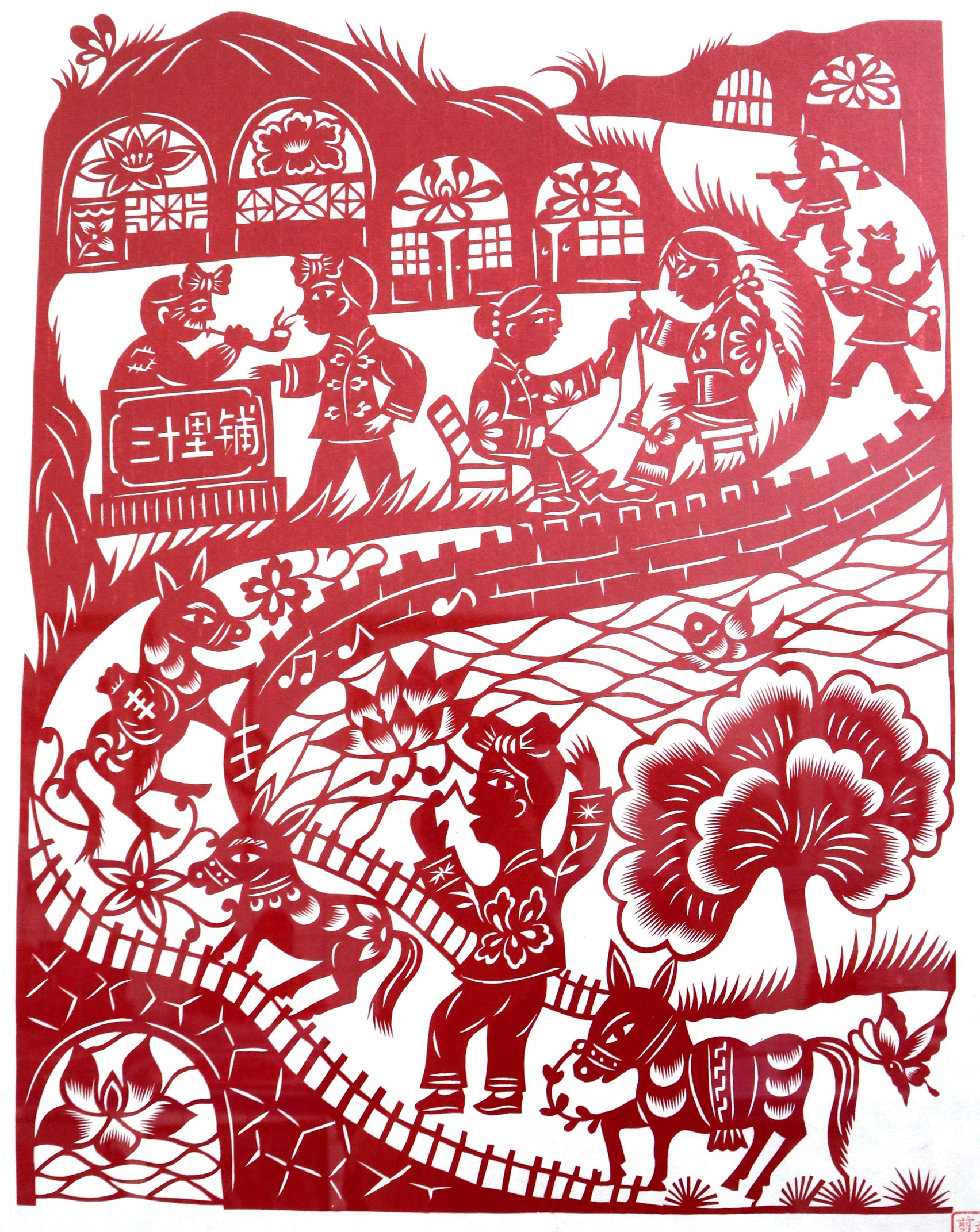 后来,经人介绍给一些从事剪纸生意的商户加工。一次,她老公带着几个样子上门给客户推荐,那人一看特别满意,每个样子都定了10套。激动得她老公出门就给她打电话:“今天没白跑,给你定活儿了,你可有事干了。”在去延安的一次推销中,一客商看了她的作品后,表示大量需要,但给的价钱仅为市场价的三分之一。为了抓住机遇,她果断的签订了合同。接订单之后,她从早上6点一直剪到第二天中午,累得腰酸背痛,但对剪纸的信心更大了。