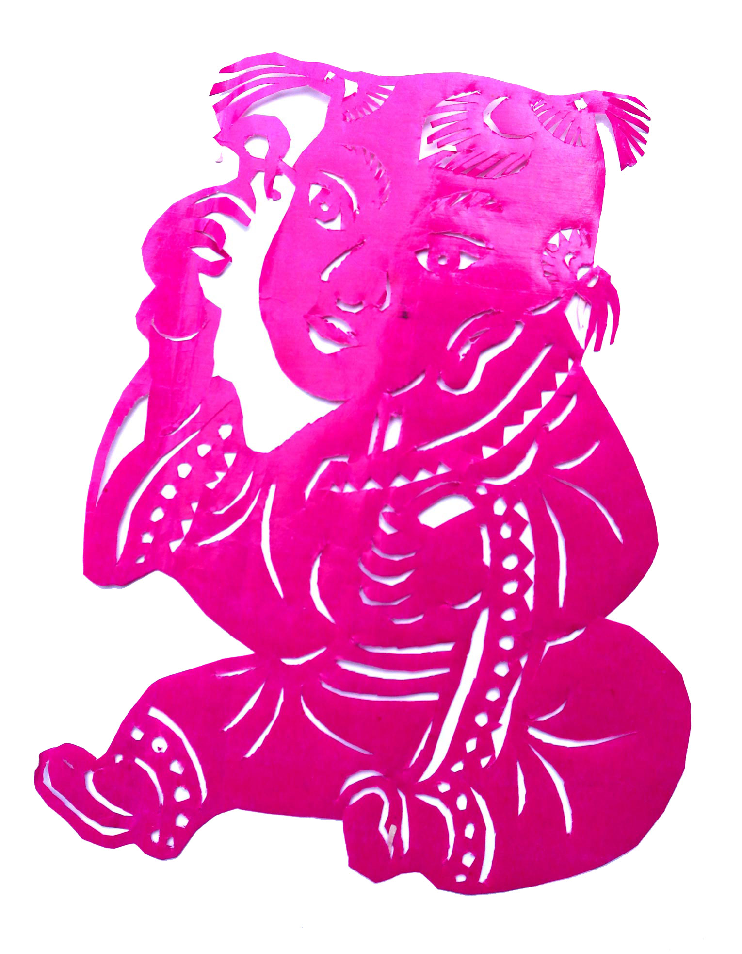 狄忠义没有参加过特别大的展览,所有的剪纸作品都是用于民俗活动,也是为了生活。40岁时作品曾在合阳县文化馆展出,还送到法国展出。狄忠义的剪纸造型生动传神,剪工精巧到位,一丝不苟,特别是用于民俗的金童玉女,其衣服上的每个剪纸纹样精湛细腻,体现出剪纸艺人的工匠精神,让人赞叹。