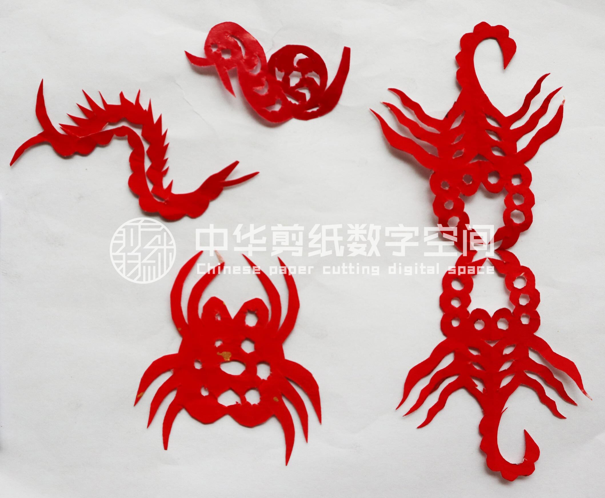 屈丽萍兄妹4人,她排行最小,出生后便过继给了屈家叔父。7岁上学,但上到初一时,由于父亲车祸去世,家里经济紧张,便辍学在家,帮家里做些农活。屈丽萍虽然过继给了叔父家,但她六岁多就跟生母、外婆、姑姑学习剪纸。刚学剪纸时,父母极力反对,但外婆很支持,第一幅剪纸是拓着样子剪了传统花样“十二碗”,受到村里人的表扬,后来就是自家边画边剪,一直到现在都保持着拓画与自己画相结合的剪法。过年用的窗花、炕围花、墙画都是自己剪的。她最喜欢洛川的“碗架花”,经常自己设计款式,剪给村中办喜事的人家。外婆、母亲还教给她刺绣、捏面花的女红技艺。