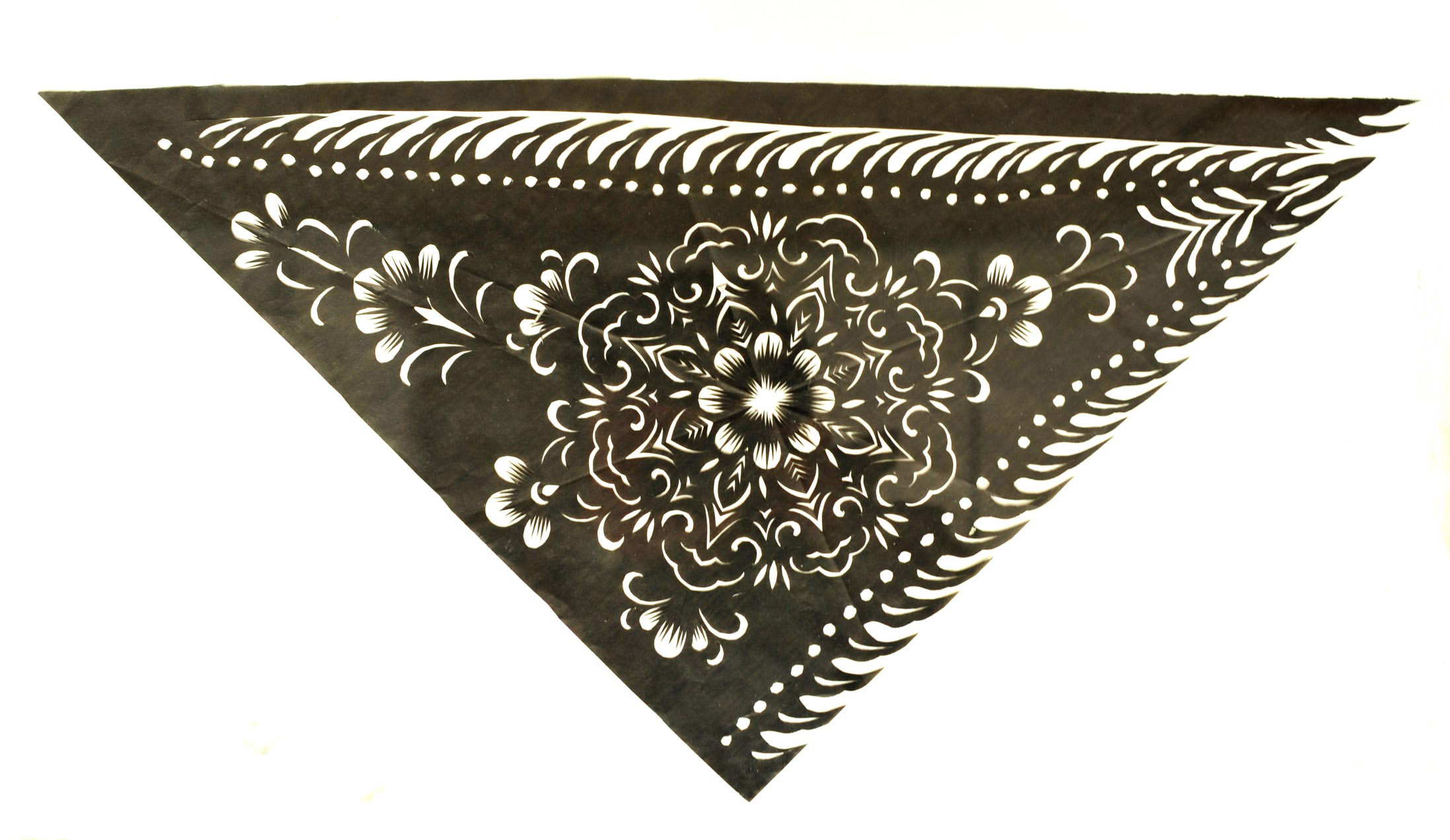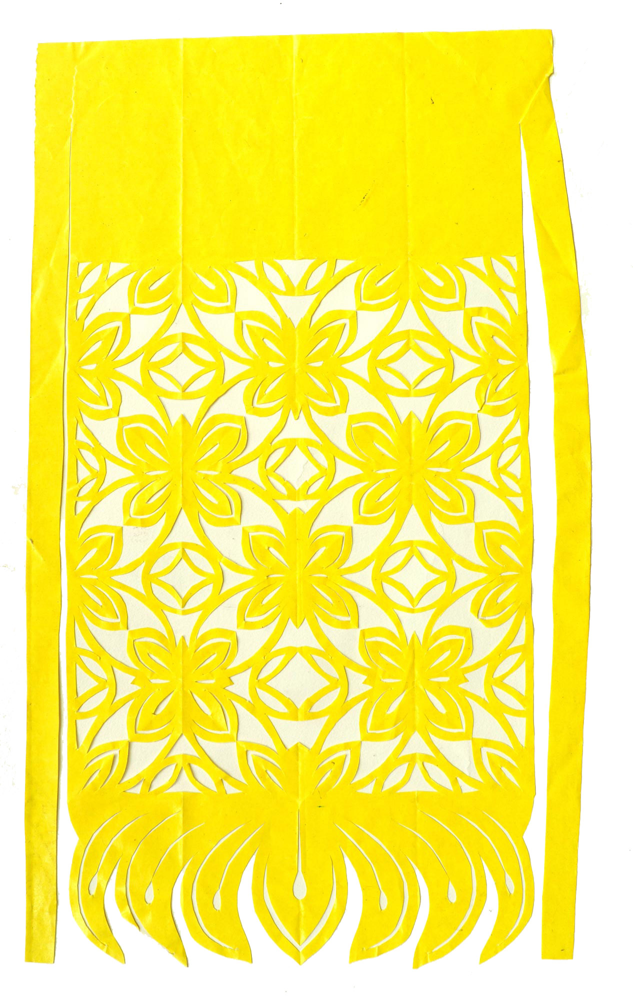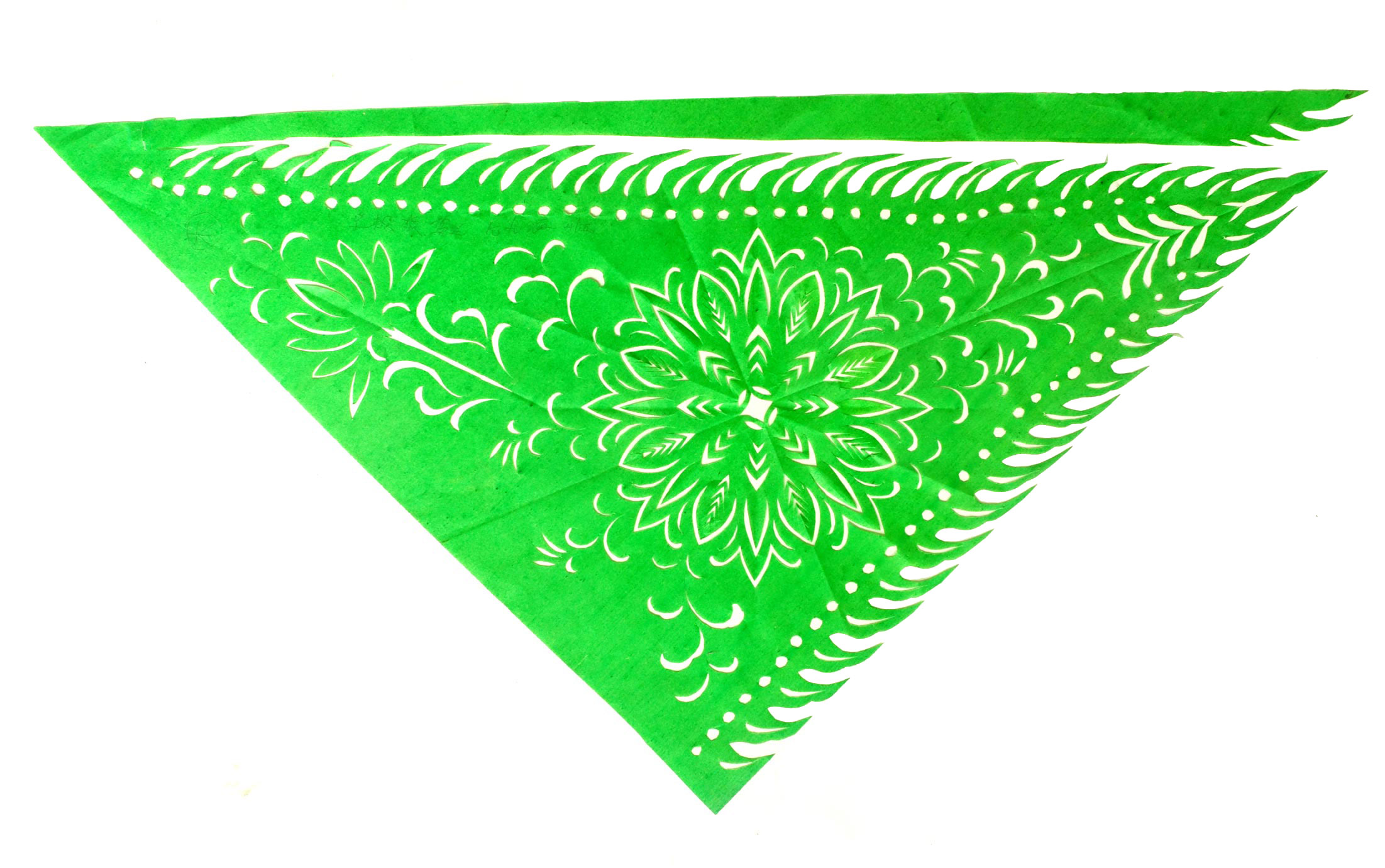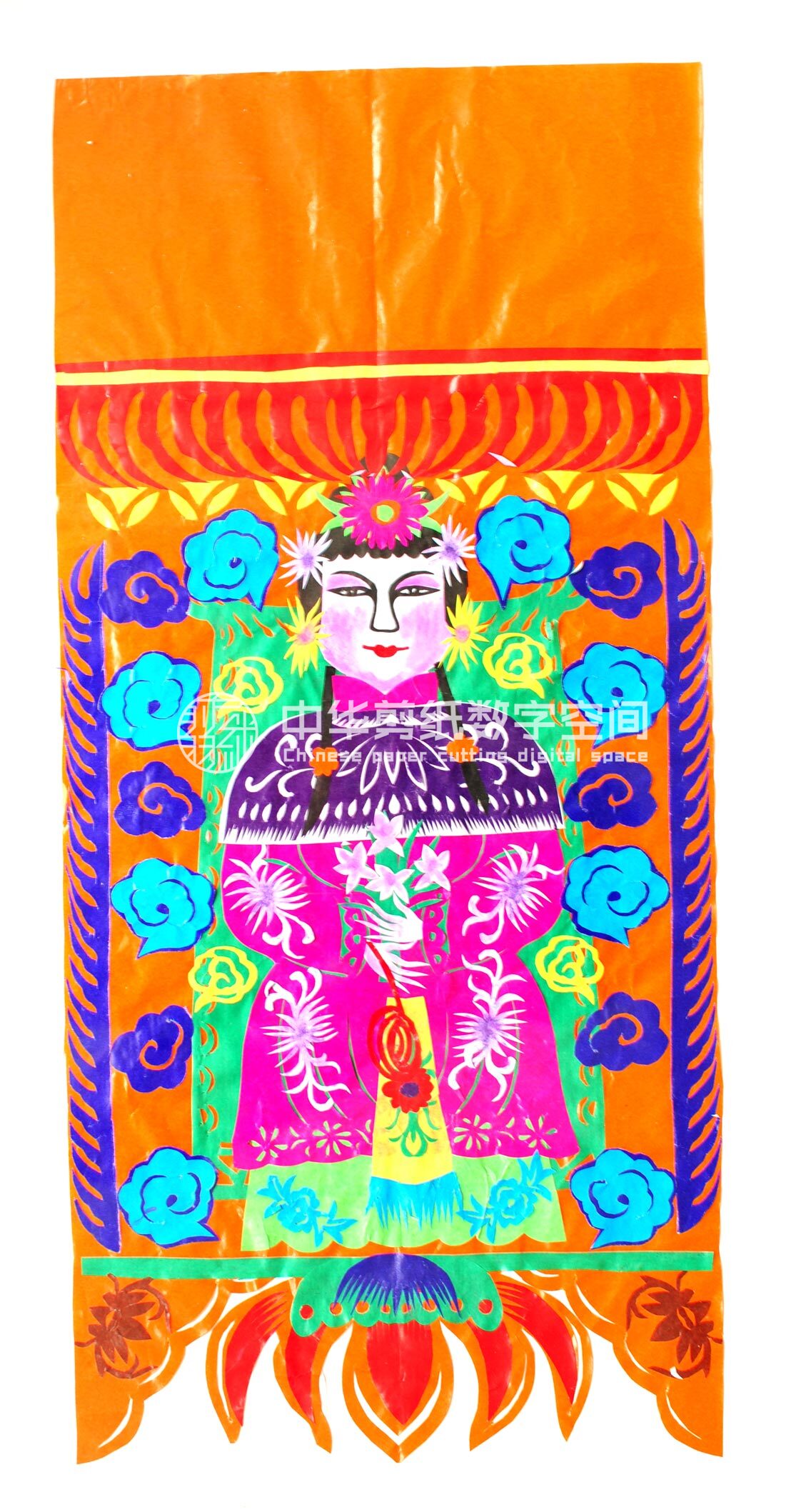 王宁,1982年生,家是眉县横渠镇横渠村老户。祖母信奉宗教,属佛道都信的大道门,有宗教活动时给寺庙做一些纸扎活,还会一些巫术仪式。父亲王海全初中毕业,原在村里剧团画布景做灯光工作,后来外出做机械游乐设施,平时喜欢音乐唱歌。母亲张列会初中文化程度,会捏面花,会绣花,平时儿子接的剪纸活母亲会帮忙来做。姑姑擅长做纸扎活,较有名气,在村里经常帮助乡党做红白喜事剪纸。