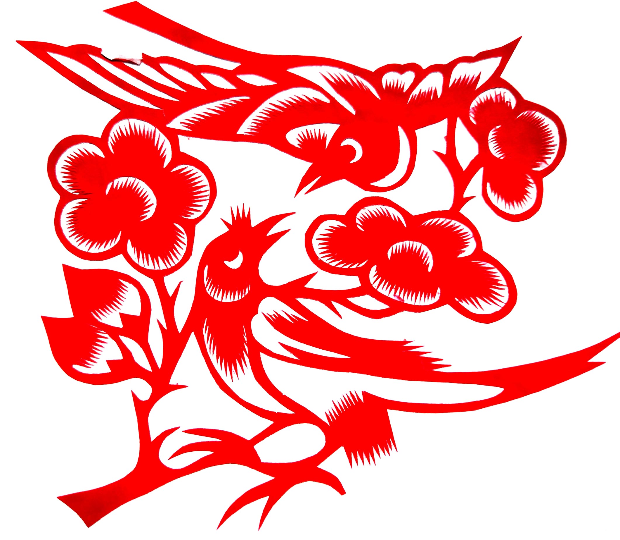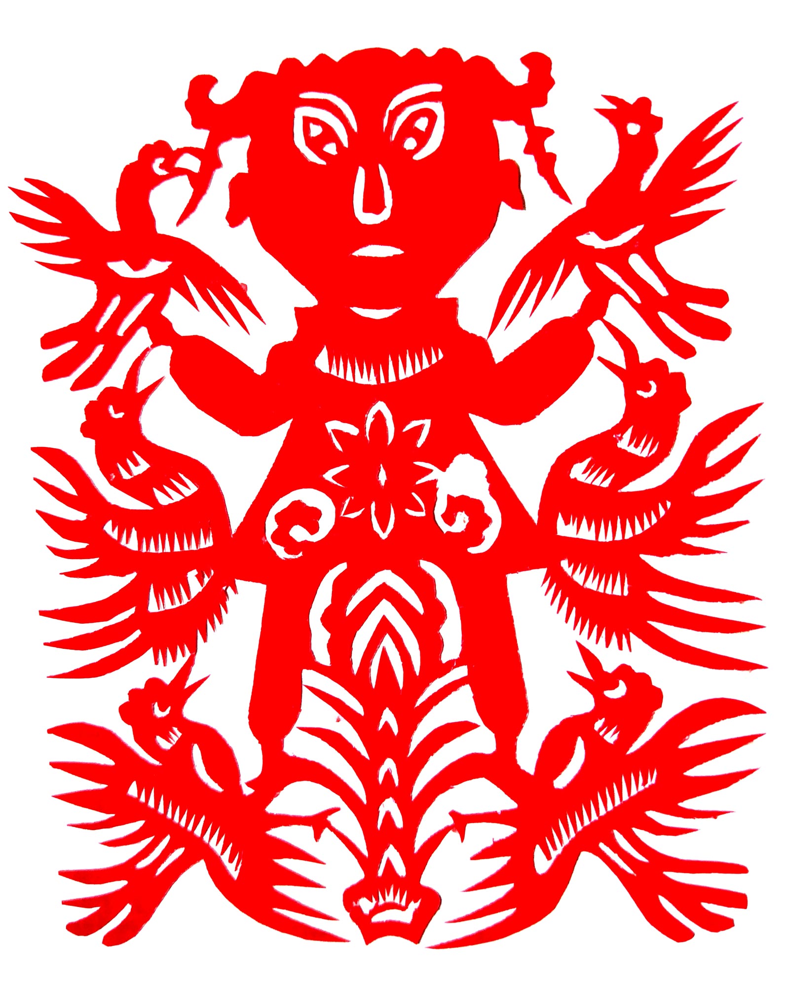张华,女,1973年1月生,家中姐弟三人,她排老大,7岁上学,初一时,因家境贫困辍学回家,在家里干农活替父母分担经济压力。11岁时,受外祖母与母亲的影响开始学习剪纸,都是拓样剪的。上小学时剪纸作品在学校举办的手工艺大赛中展出,得到老师和同学们的夸奖。之后,拜何爱叶、李玲为师,何爱叶老师擅长剪团花、彩贴剪纸,在当地影响很大。现为陕西省非物质文化遗产旬邑彩贴剪纸代表性传承人。老师教她从简单的纹样入手,传授一些剪纸技法,并教她层层深入。