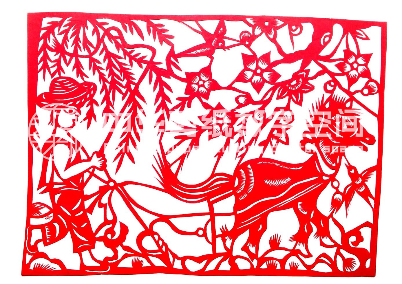 母亲对剪纸的文化内涵非常了解,主要擅长花草、彩贴等剪纸,也设计些生活气息浓郁的新剪纸,在十里八乡都有很大影响。家中的姨姨也是一位女红活的巧手,87岁高龄,还整天做鞋垫绣花。