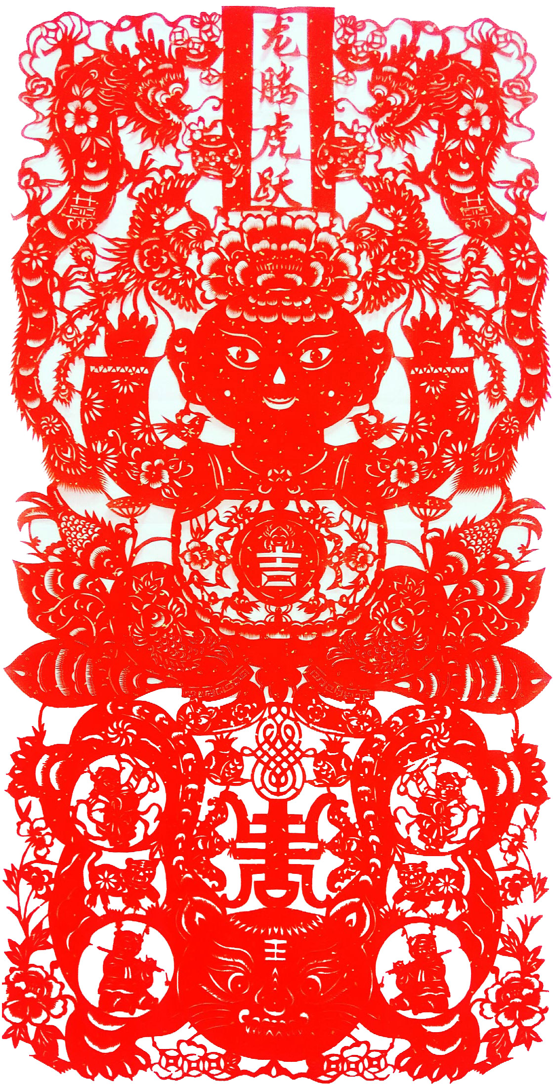 焦雪妮,女,1986年12月9日生,汉族,家中兄妹三人,她排行老二。七岁上学,初中毕业。十岁时,有一次玩折纸,她画了一头牛,用剪刀剪完打开,觉得很惊奇,剪了一个团花四个牛,她把剪纸贴在玻璃上,大家都说很漂亮。上初一时,她跟着母亲学习绣花,给邻居们剪一些鞋样花,受到了人们的夸奖。初中毕业后,焦雪妮学了半年的缝纫机刺绣,绣过门帘、鞋垫、盖头等。后来她在外地打工三年多,但从没有放弃自己的爱好,只要一有时间就会画画,利用休息时间剪纸,买一些有关民俗剪纸方面的书学习,还带动了几个同事跟她一起学剪纸。